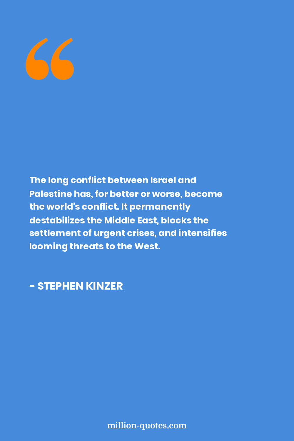 The long conflict between Israel and Palestine has, for better or worse, become the world's conflict. It permanently destabilizes the Middle East, blocks the settlement of urgent crises, and intensifies looming threats to the West.