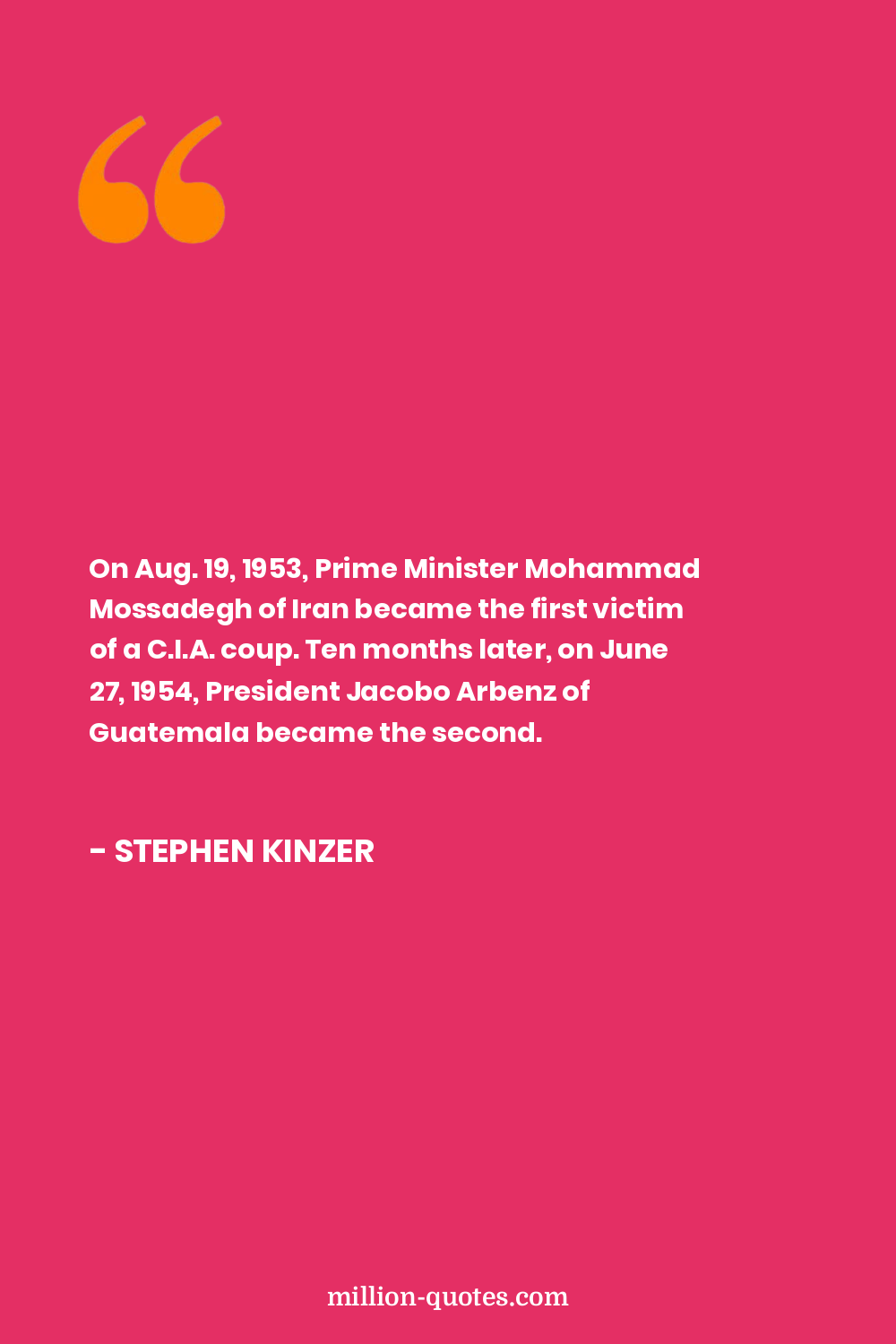On Aug. 19, 1953, Prime Minister Mohammad Mossadegh of Iran became the first victim of a C.I.A. coup. Ten months later, on June 27, 1954, President Jacobo Arbenz of Guatemala became the second.