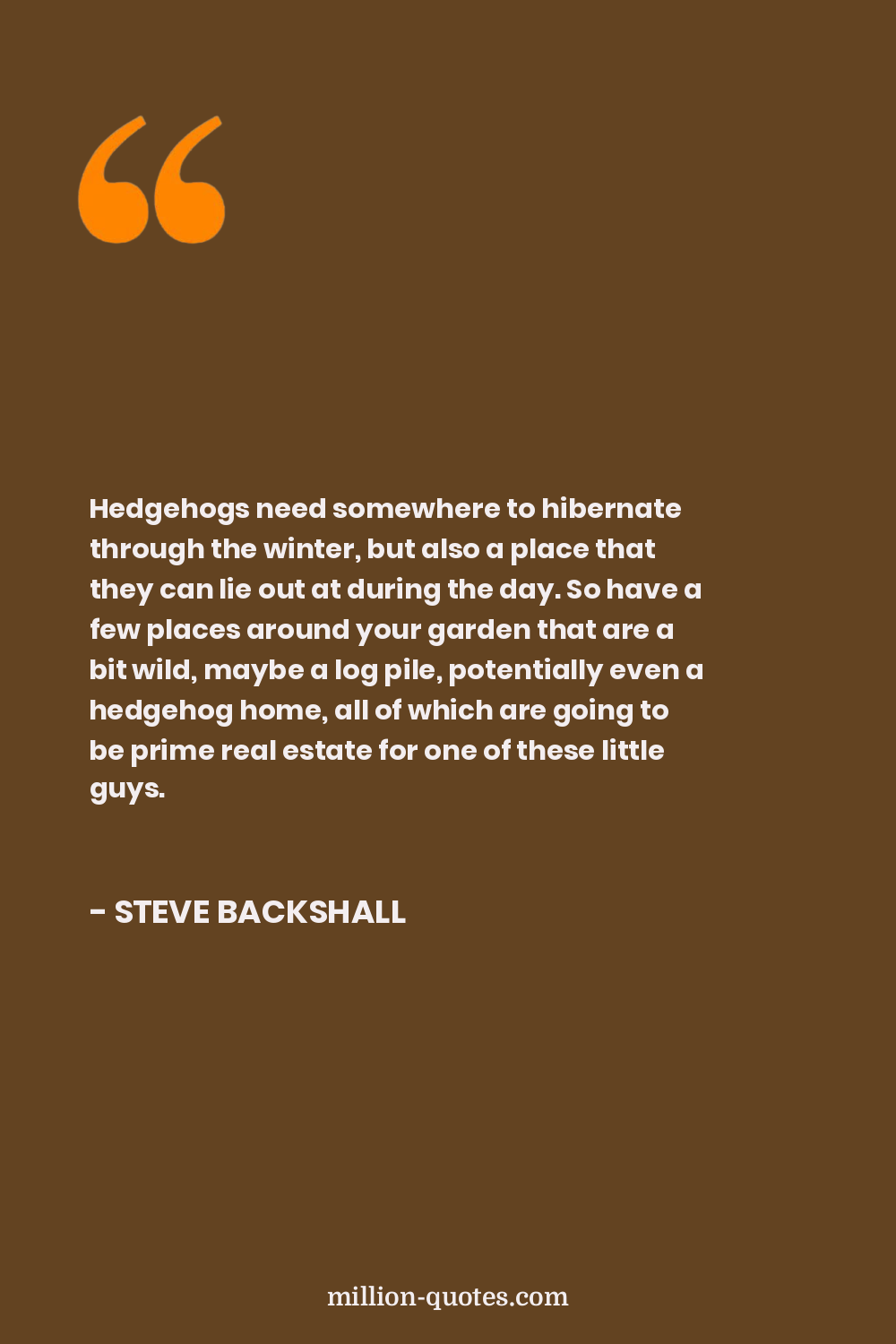 Hedgehogs need somewhere to hibernate through the winter, but also a place that they can lie out at during the day. So have a few places around your garden that are a bit wild, maybe a log pile, potentially even a hedgehog home, all of which are going to be prime real estate for one of these little guys.