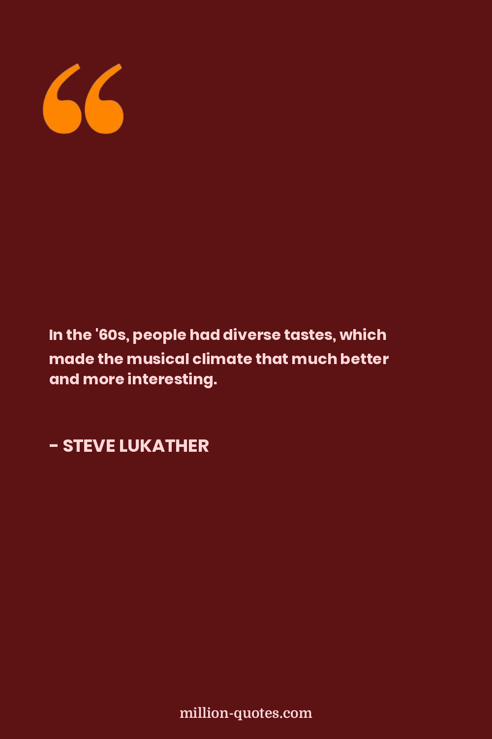 In the '60s, people had diverse tastes, which made the musical climate that much better and more interesting.