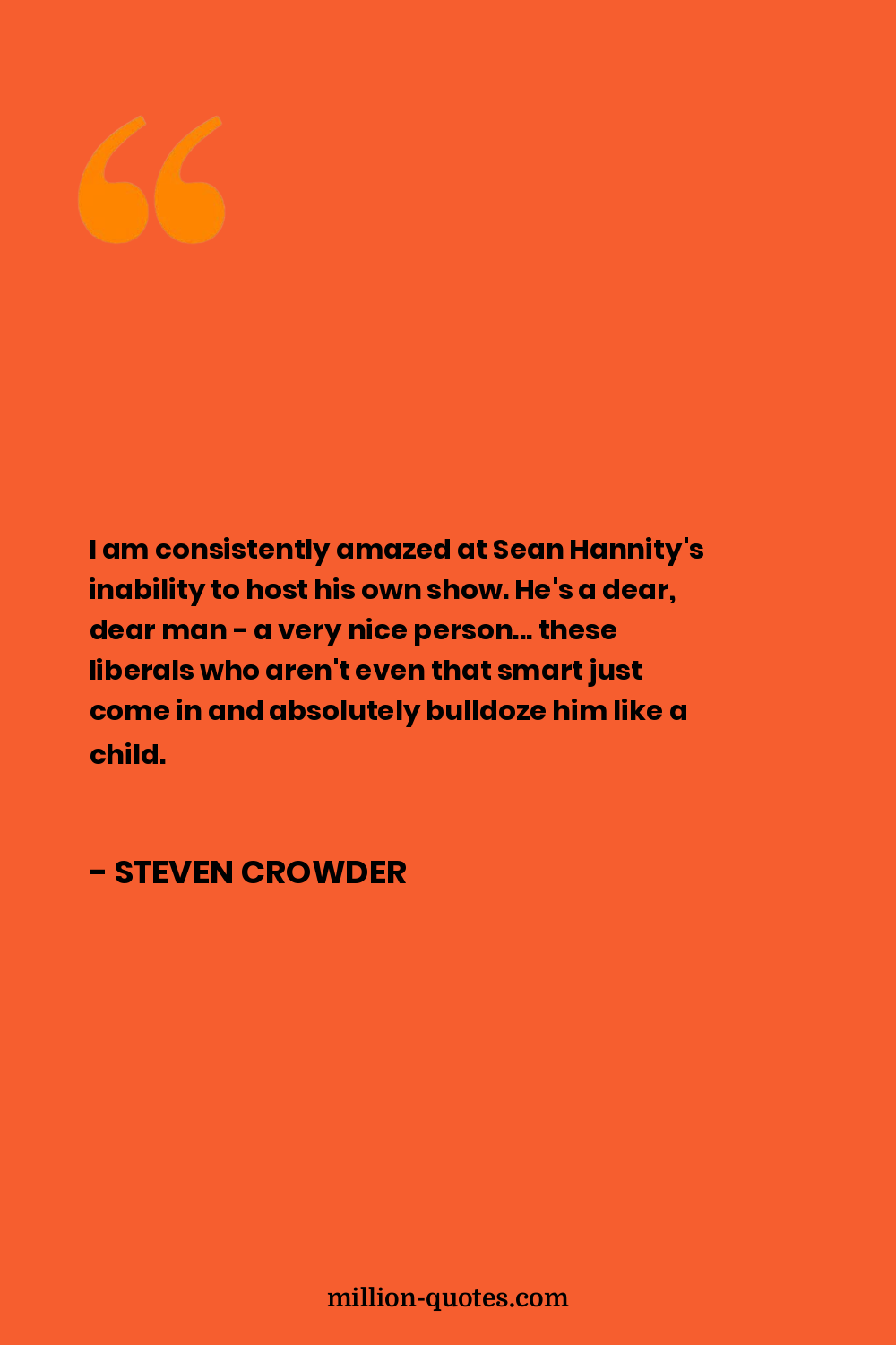 I am consistently amazed at Sean Hannity's inability to host his own show. He's a dear, dear man - a very nice person... these liberals who aren't even that smart just come in and absolutely bulldoze him like a child.