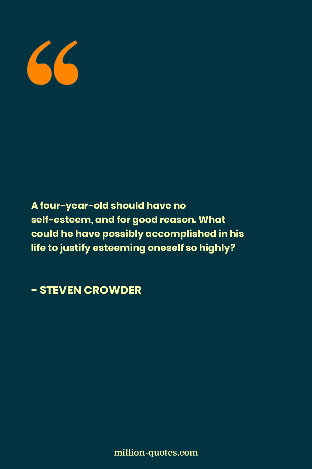 A four-year-old should have no self-esteem, and for good reason. What could he have possibly accomplished in his life to justify esteeming oneself so highly?