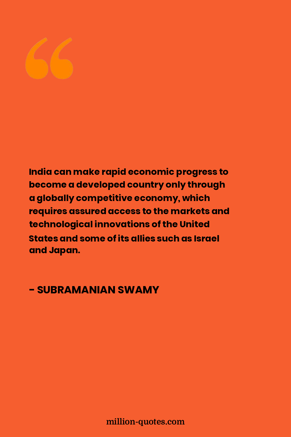 India can make rapid economic progress to become a developed country only through a globally competitive economy, which requires assured access to the markets and technological innovations of the United States and some of its allies such as Israel and Japan.