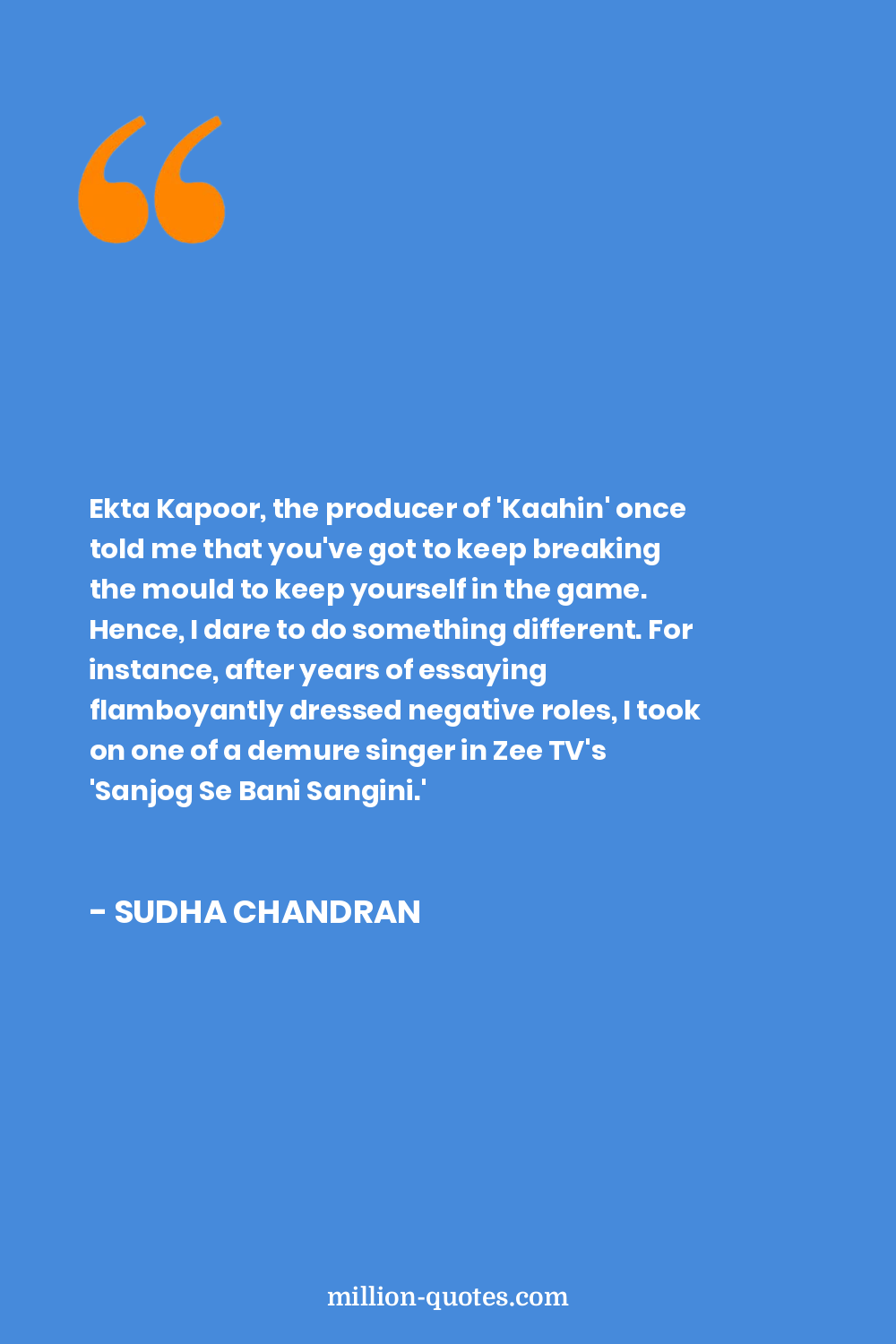 Ekta Kapoor, the producer of 'Kaahin' once told me that you've got to keep breaking the mould to keep yourself in the game. Hence, I dare to do something different. For instance, after years of essaying flamboyantly dressed negative roles, I took on one of a demure singer in Zee TV's 'Sanjog Se Bani Sangini.'