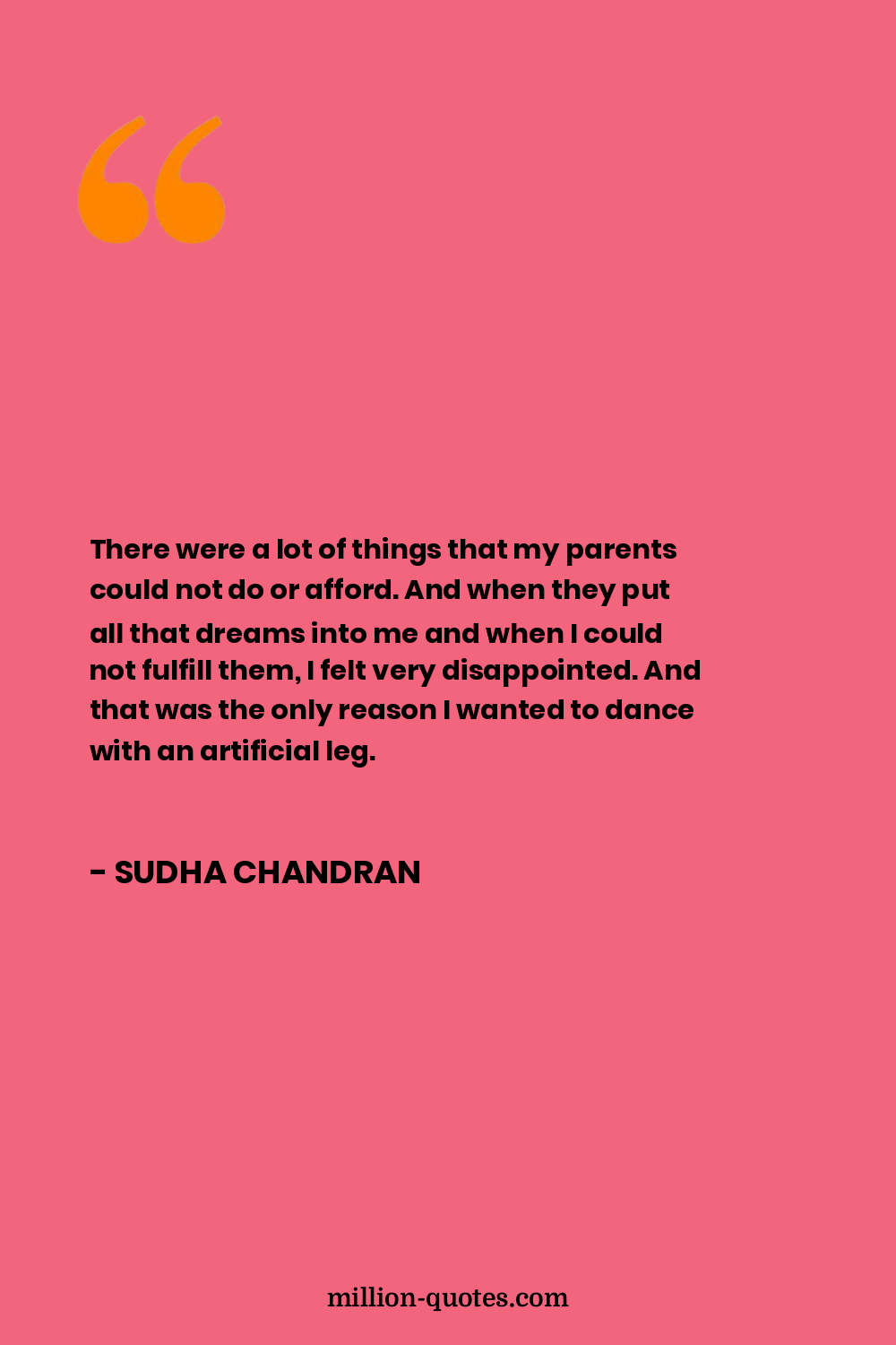 There were a lot of things that my parents could not do or afford. And when they put all that dreams into me and when I could not fulfill them, I felt very disappointed. And that was the only reason I wanted to dance with an artificial leg.