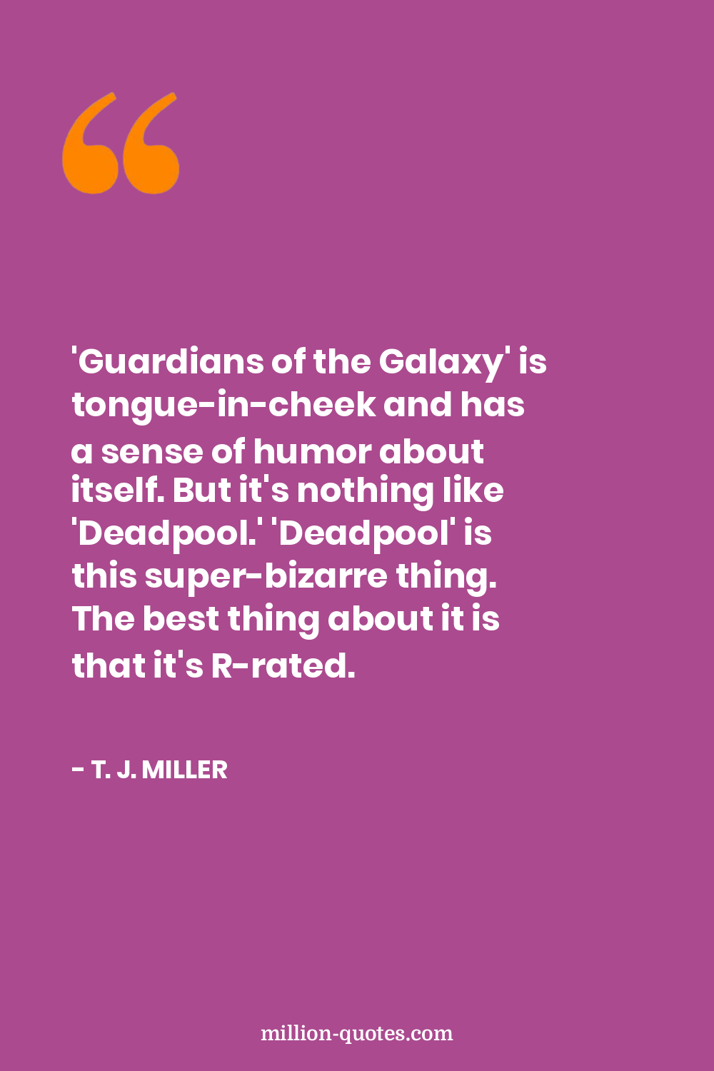 'Guardians of the Galaxy' is tongue-in-cheek and has a sense of humor about itself. But it's nothing like 'Deadpool.' 'Deadpool' is this super-bizarre thing. The best thing about it is that it's R-rated.