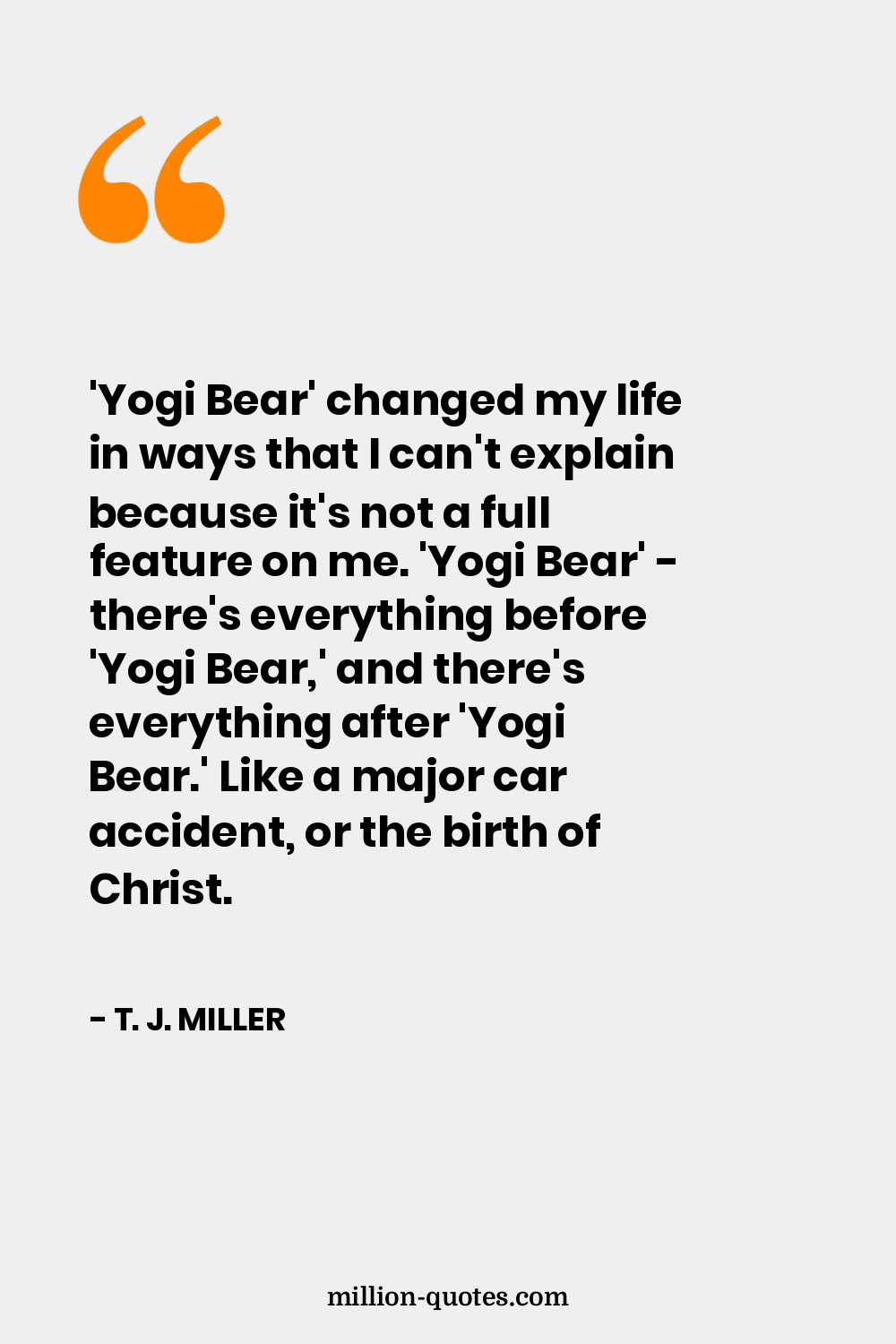 'Yogi Bear' changed my life in ways that I can't explain because it's not a full feature on me. 'Yogi Bear' - there's everything before 'Yogi Bear,' and there's everything after 'Yogi Bear.' Like a major car accident, or the birth of Christ.