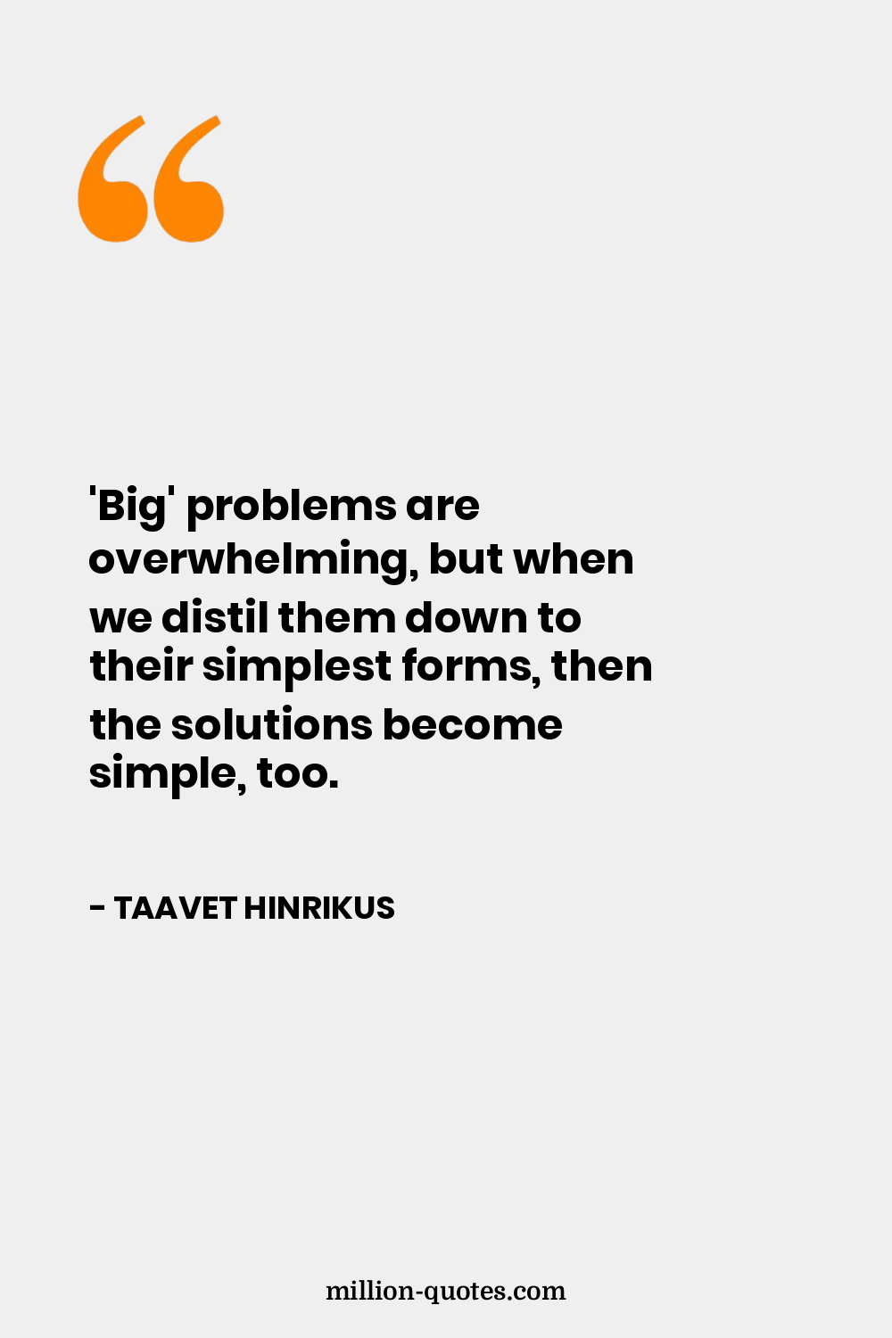 'Big' problems are overwhelming, but when we distil them down to their simplest forms, then the solutions become simple, too.