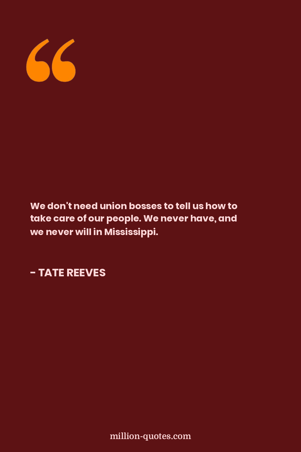 We don't need union bosses to tell us how to take care of our people. We never have, and we never will in Mississippi.