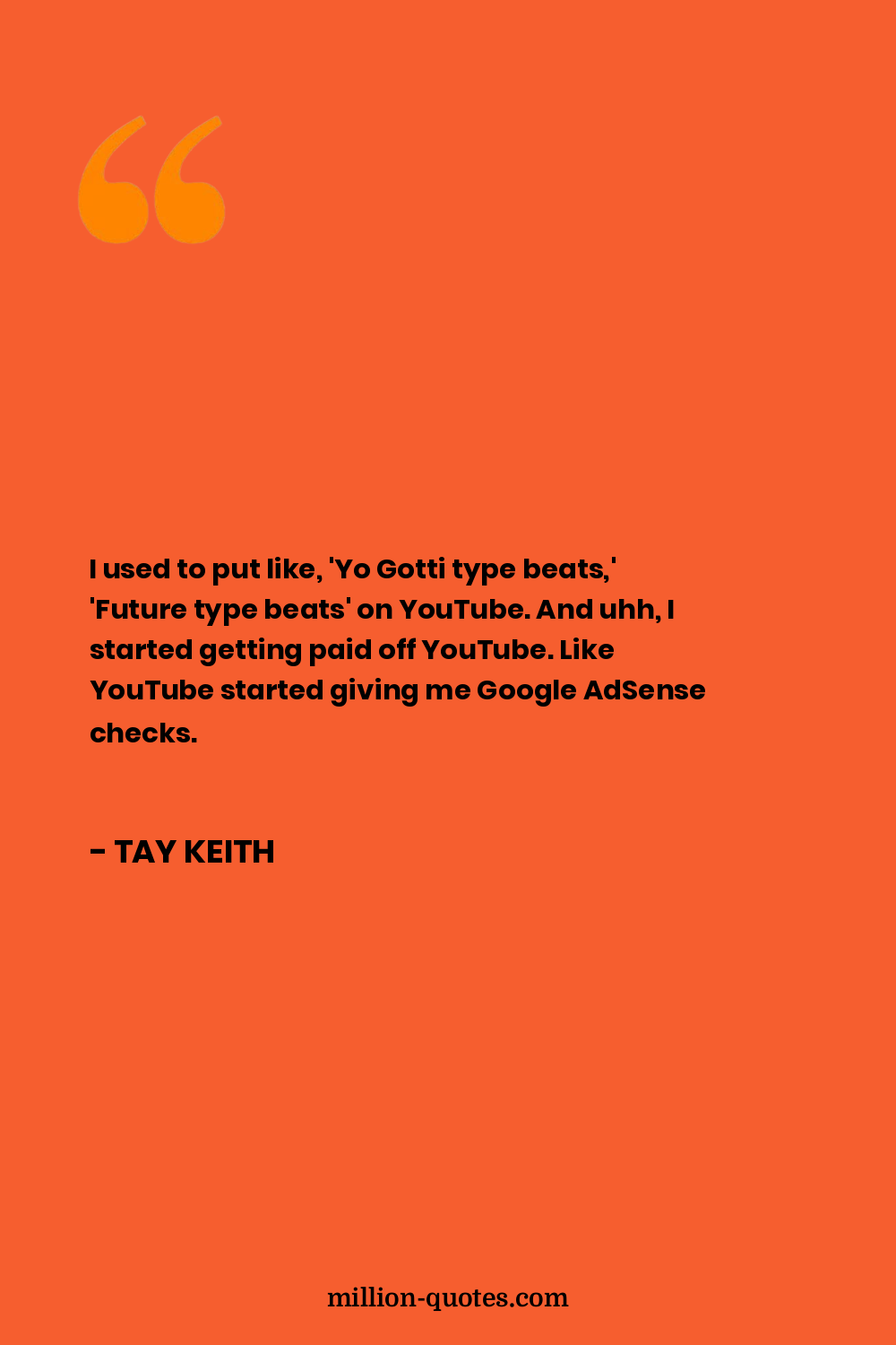 You know, as I'm progressing with my sound, I just realize when you got a simple sound with crazy percussion in the beats, it makes it. It kinda shapes my sound when it comes to what makes a Tay Keith beat.
