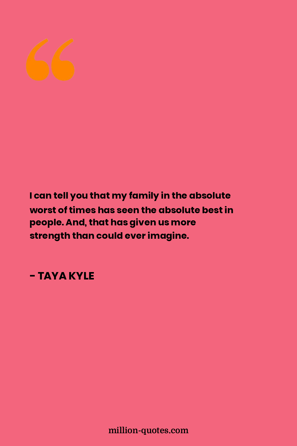 I can tell you that my family in the absolute worst of times has seen the absolute best in people. And, that has given us more strength than could ever imagine.