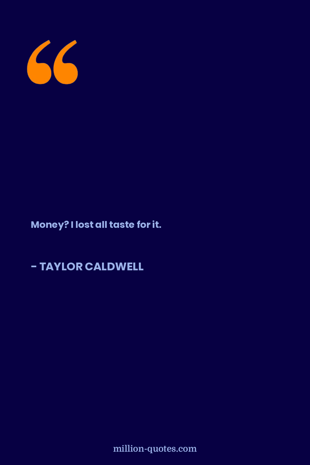 Money? I lost all taste for it.