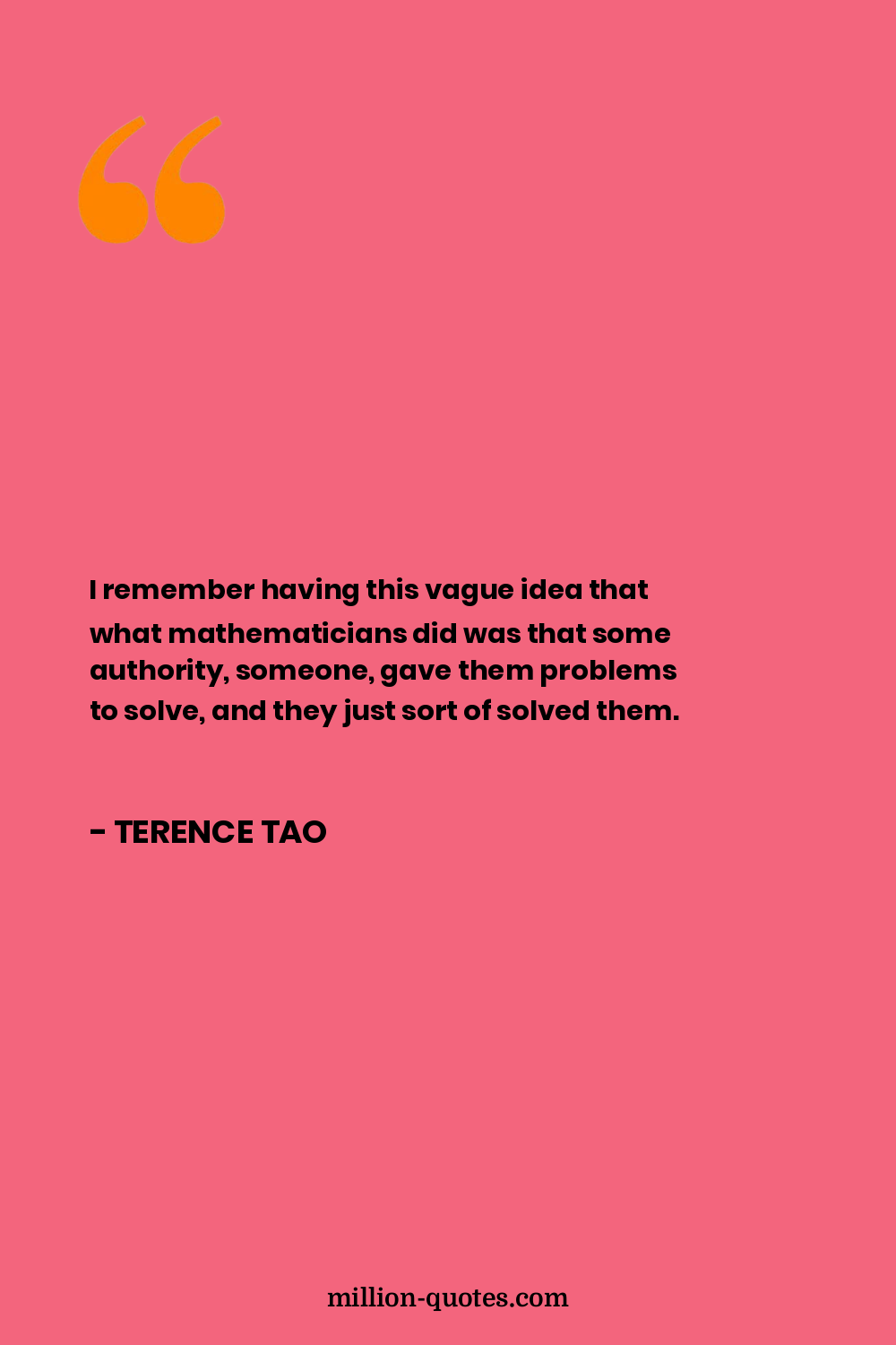 I remember having this vague idea that what mathematicians did was that some authority, someone, gave them problems to solve, and they just sort of solved them.