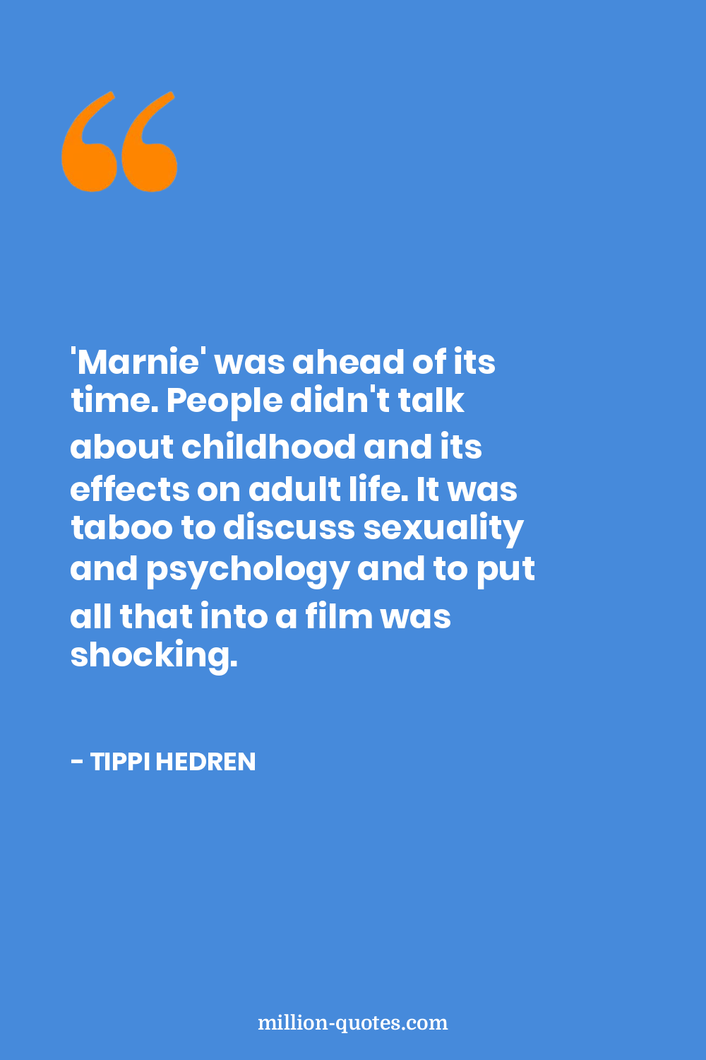 'Marnie' was ahead of its time. People didn't talk about childhood and its effects on adult life. It was taboo to discuss sexuality and psychology and to put all that into a film was shocking.