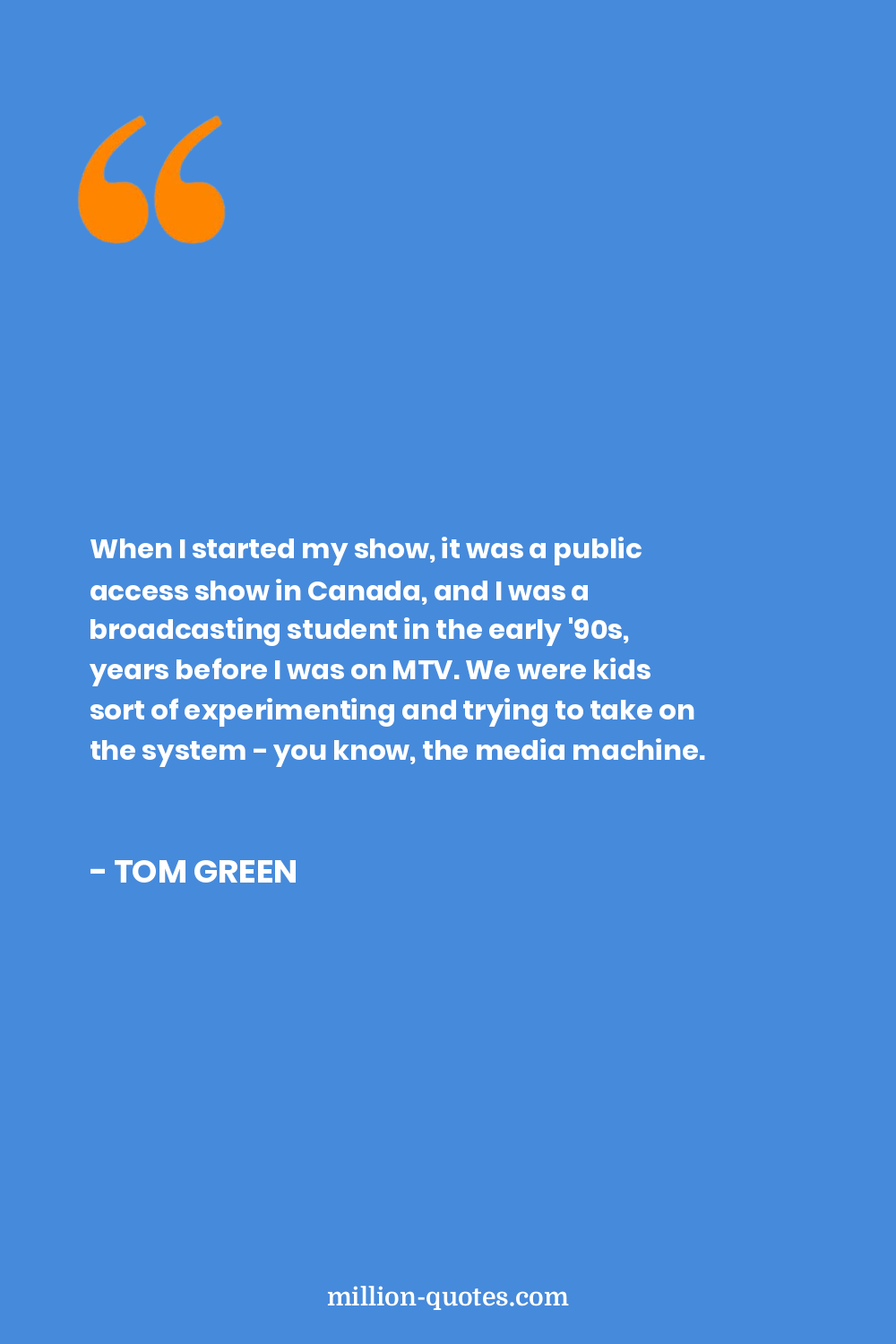When I started my show, it was a public access show in Canada, and I was a broadcasting student in the early '90s, years before I was on MTV. We were kids sort of experimenting and trying to take on the system - you know, the media machine.
