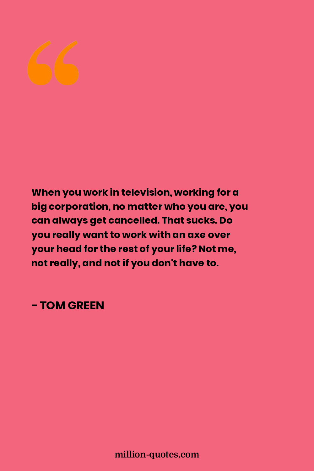 When you work in television, working for a big corporation, no matter who you are, you can always get cancelled. That sucks. Do you really want to work with an axe over your head for the rest of your life? Not me, not really, and not if you don't have to.