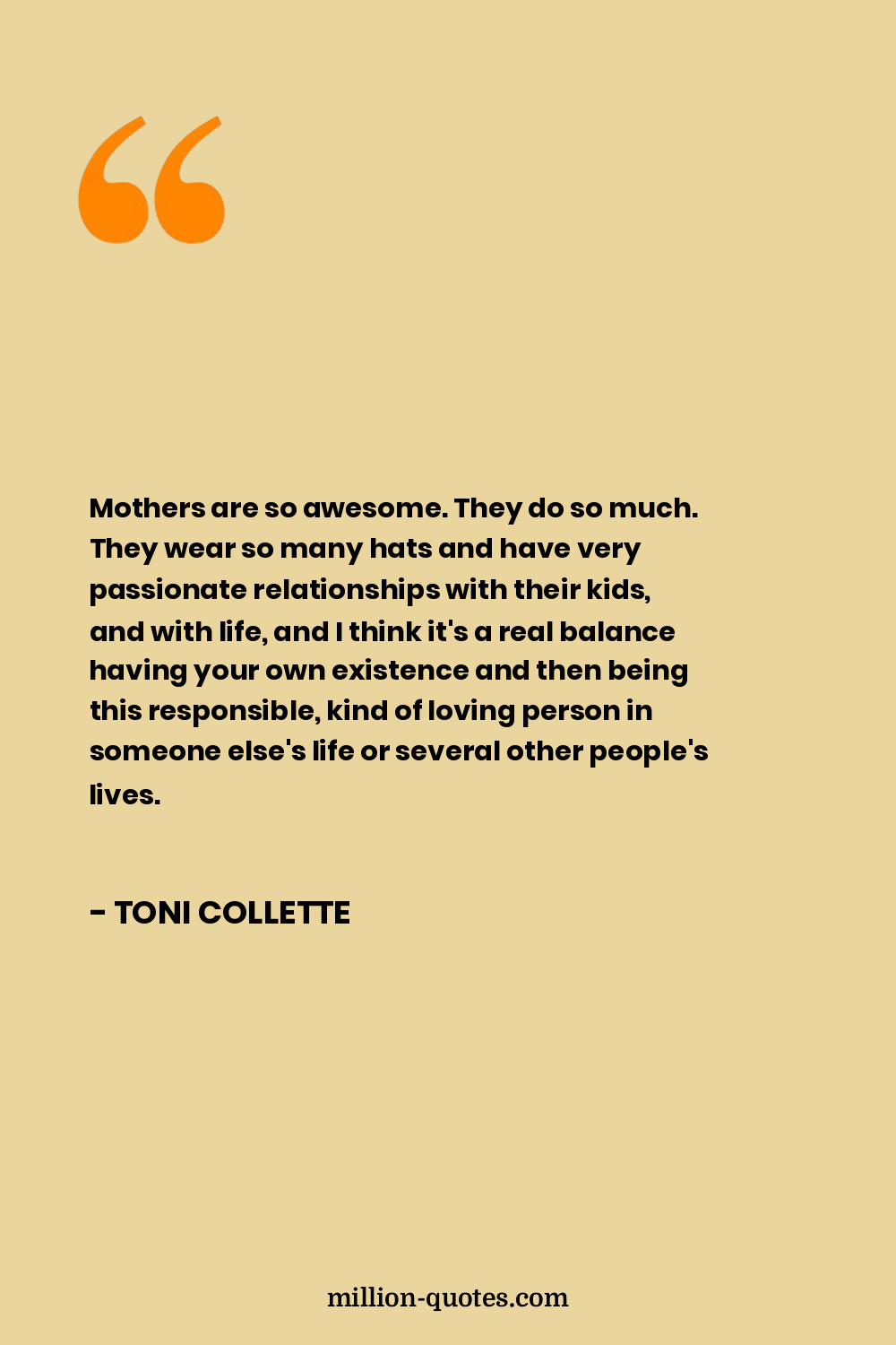 Mothers are so awesome. They do so much. They wear so many hats and have very passionate relationships with their kids, and with life, and I think it's a real balance having your own existence and then being this responsible, kind of loving person in someone else's life or several other people's lives.