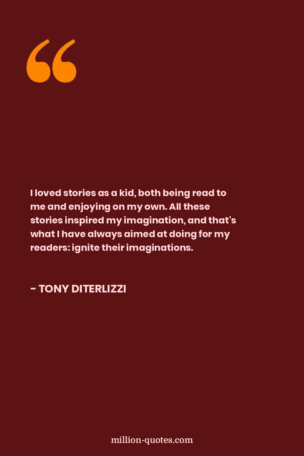 I loved stories as a kid, both being read to me and enjoying on my own. All these stories inspired my imagination, and that's what I have always aimed at doing for my readers: ignite their imaginations.