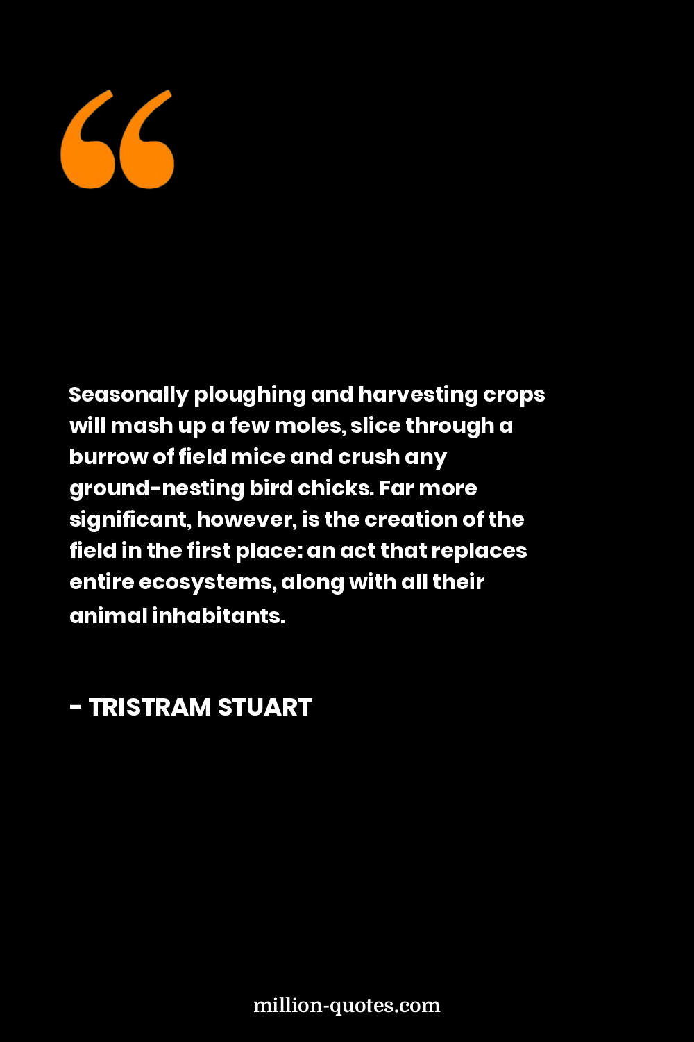 Seasonally ploughing and harvesting crops will mash up a few moles, slice through a burrow of field mice and crush any ground-nesting bird chicks. Far more significant, however, is the creation of the field in the first place: an act that replaces entire ecosystems, along with all their animal inhabitants.