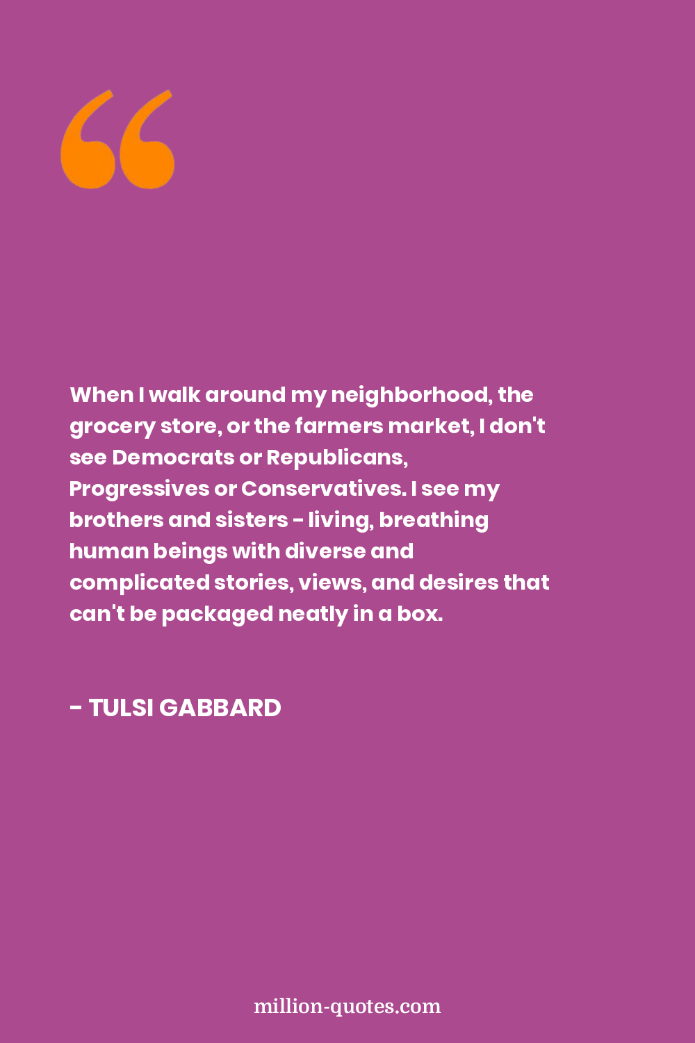 When I walk around my neighborhood, the grocery store, or the farmers market, I don't see Democrats or Republicans, Progressives or Conservatives. I see my brothers and sisters - living, breathing human beings with diverse and complicated stories, views, and desires that can't be packaged neatly in a box.