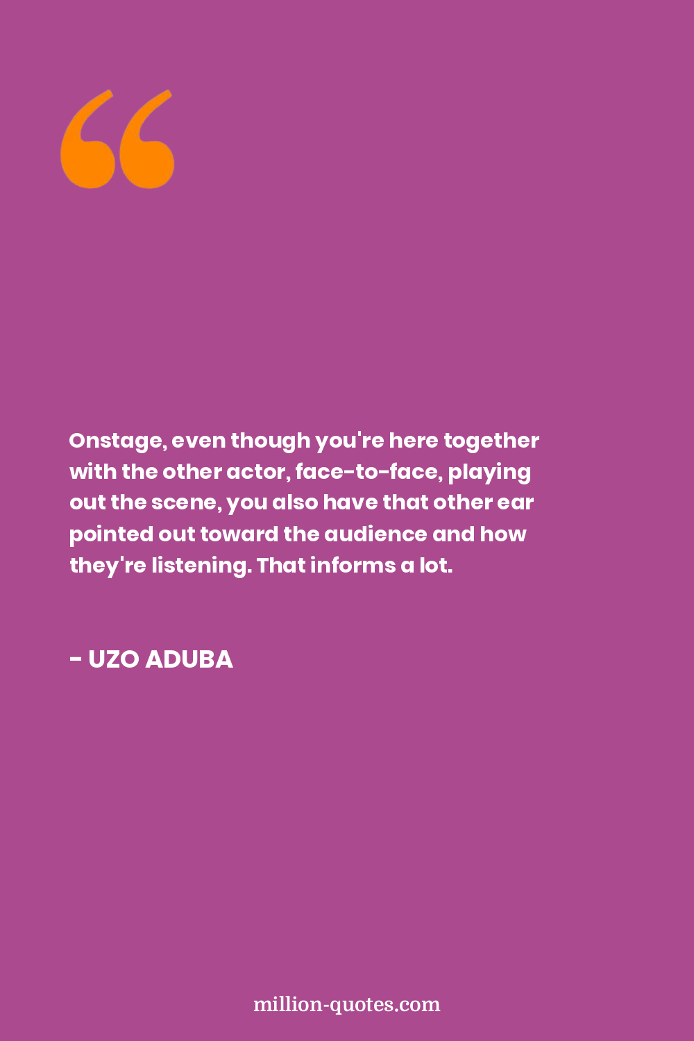 Onstage, even though you're here together with the other actor, face-to-face, playing out the scene, you also have that other ear pointed out toward the audience and how they're listening. That informs a lot.