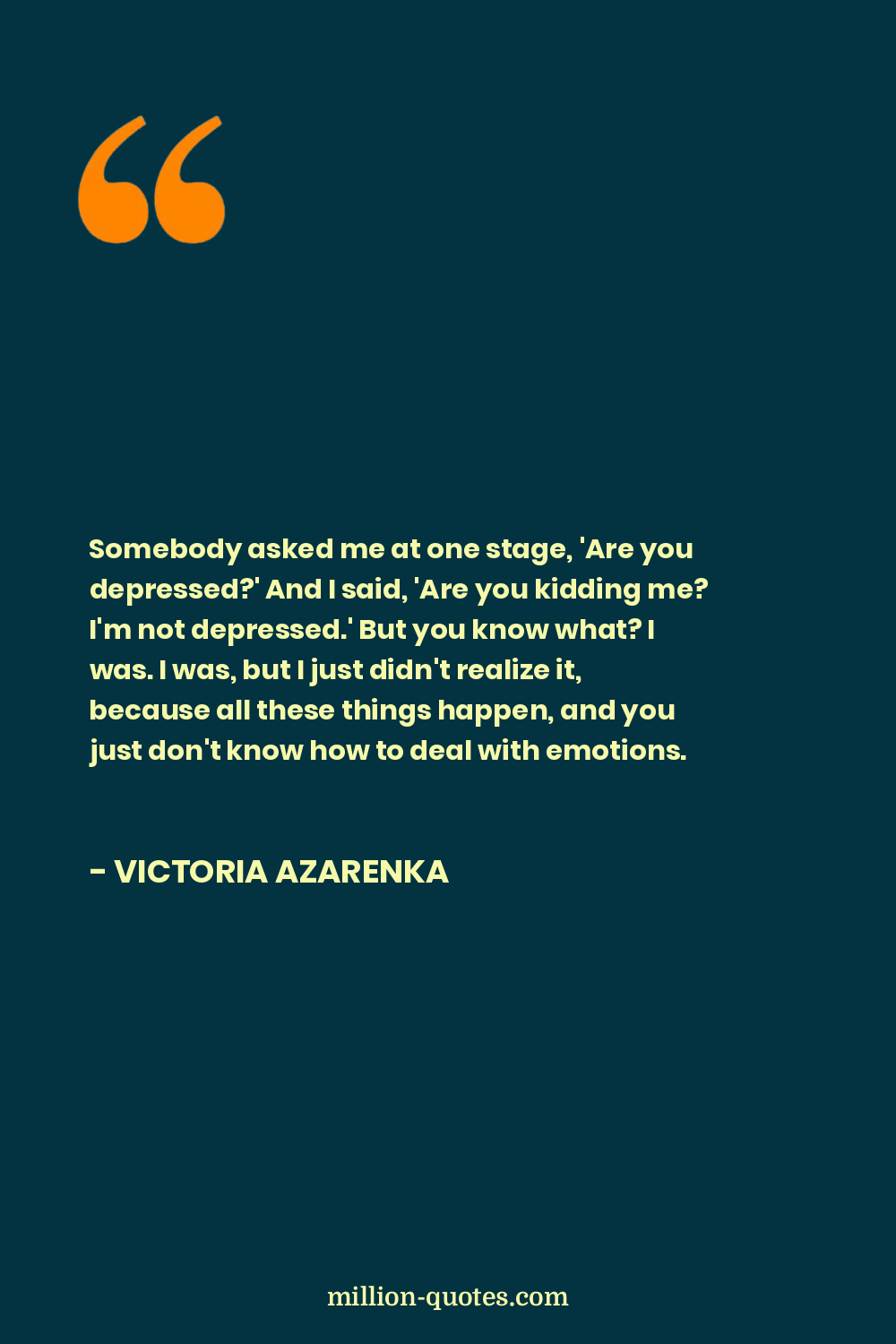 Somebody asked me at one stage, 'Are you depressed?' And I said, 'Are you kidding me? I'm not depressed.' But you know what? I was. I was, but I just didn't realize it, because all these things happen, and you just don't know how to deal with emotions.
