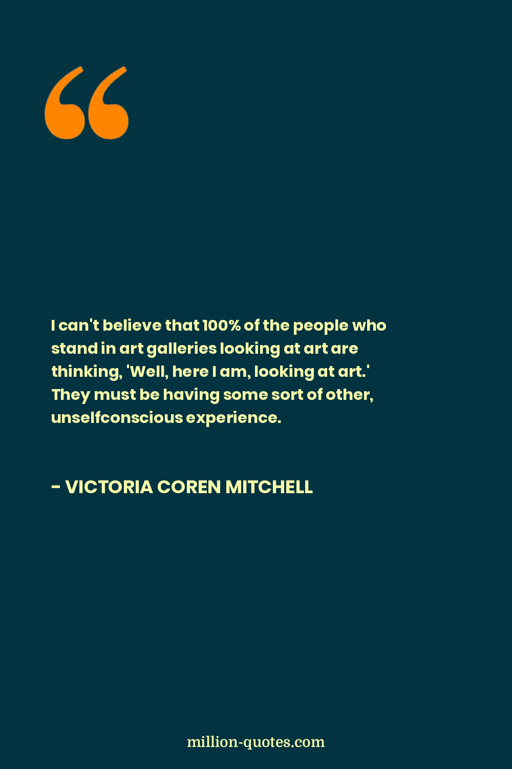 I can't believe that 100% of the people who stand in art galleries looking at art are thinking, 'Well, here I am, looking at art.' They must be having some sort of other, unselfconscious experience.
