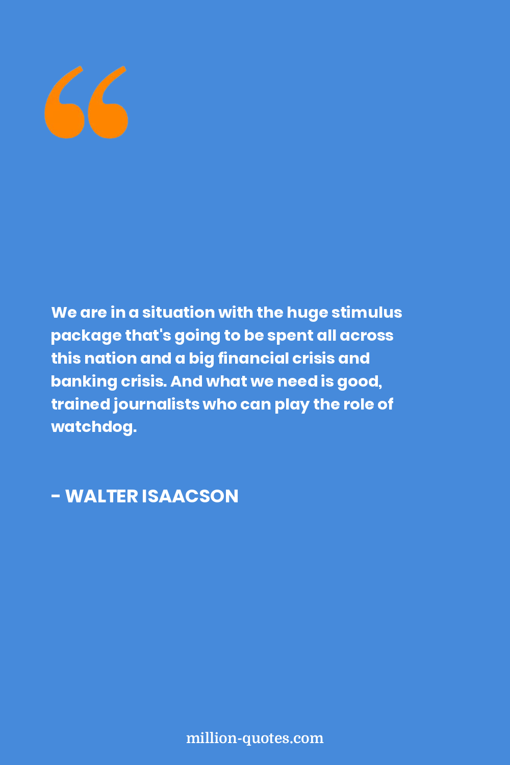 We are in a situation with the huge stimulus package that's going to be spent all across this nation and a big financial crisis and banking crisis. And what we need is good, trained journalists who can play the role of watchdog.