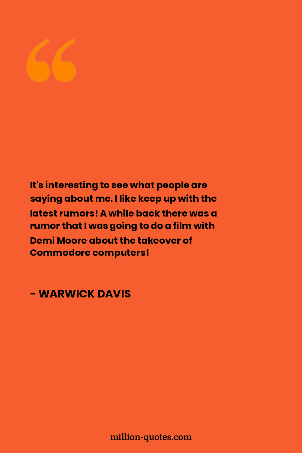 It's interesting to see what people are saying about me. I like keep up with the latest rumors! A while back there was a rumor that I was going to do a film with Demi Moore about the takeover of Commodore computers!