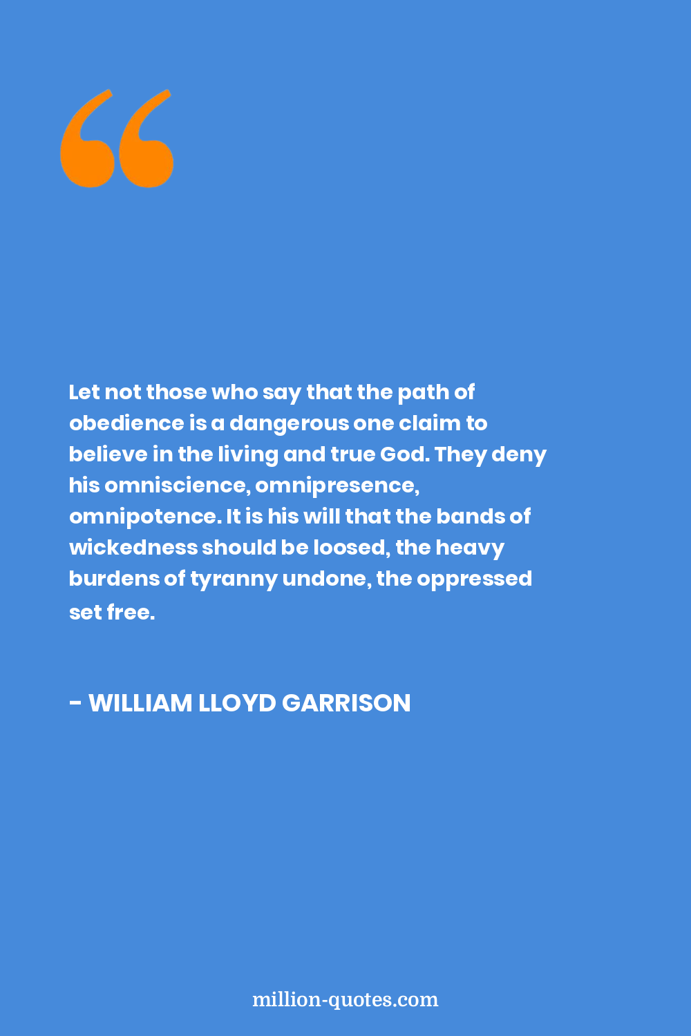 Let not those who say that the path of obedience is a dangerous one claim to believe in the living and true God. They deny his omniscience, omnipresence, omnipotence. It is his will that the bands of wickedness should be loosed, the heavy burdens of tyranny undone, the oppressed set free.