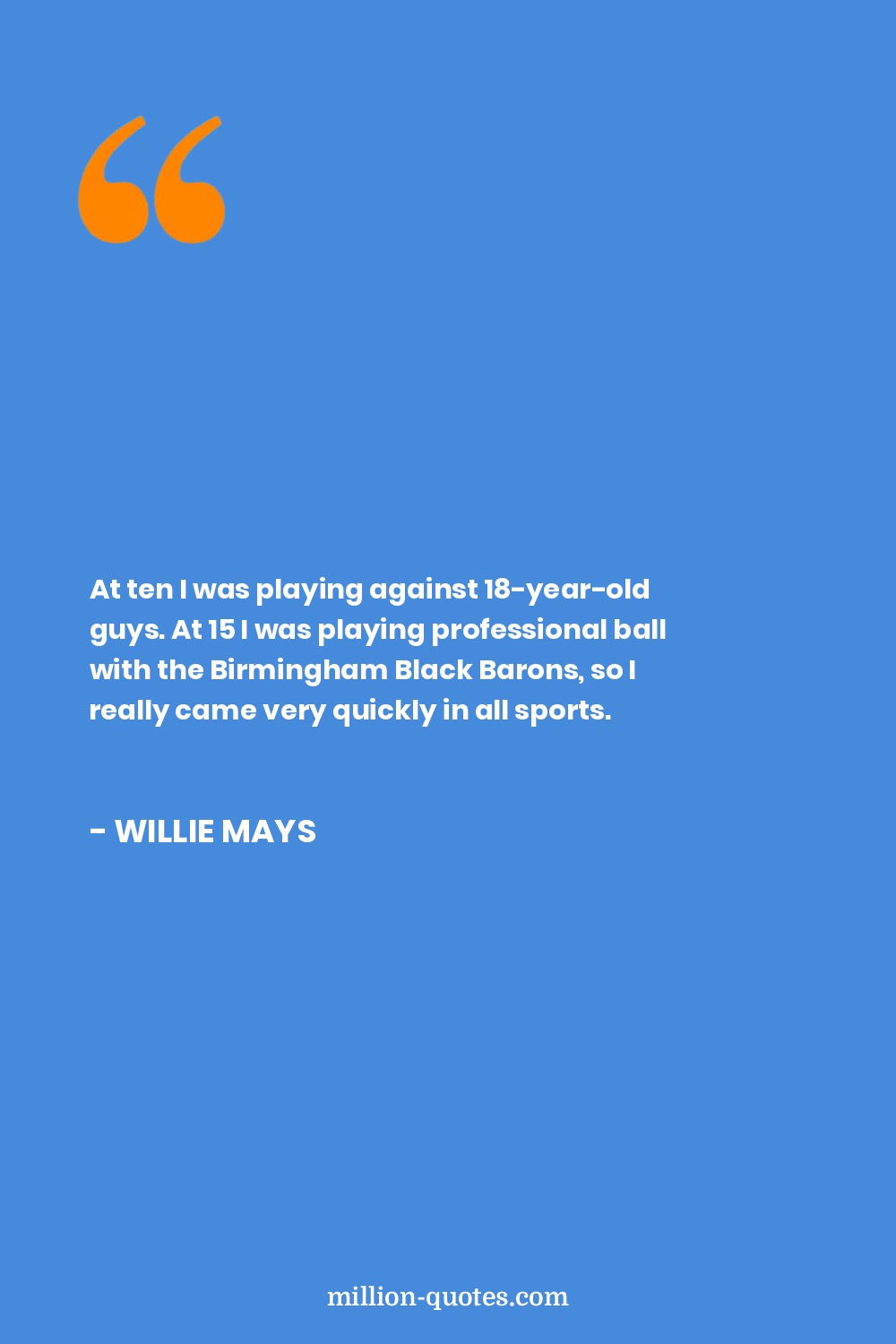 At ten I was playing against 18-year-old guys. At 15 I was playing professional ball with the Birmingham Black Barons, so I really came very quickly in all sports.