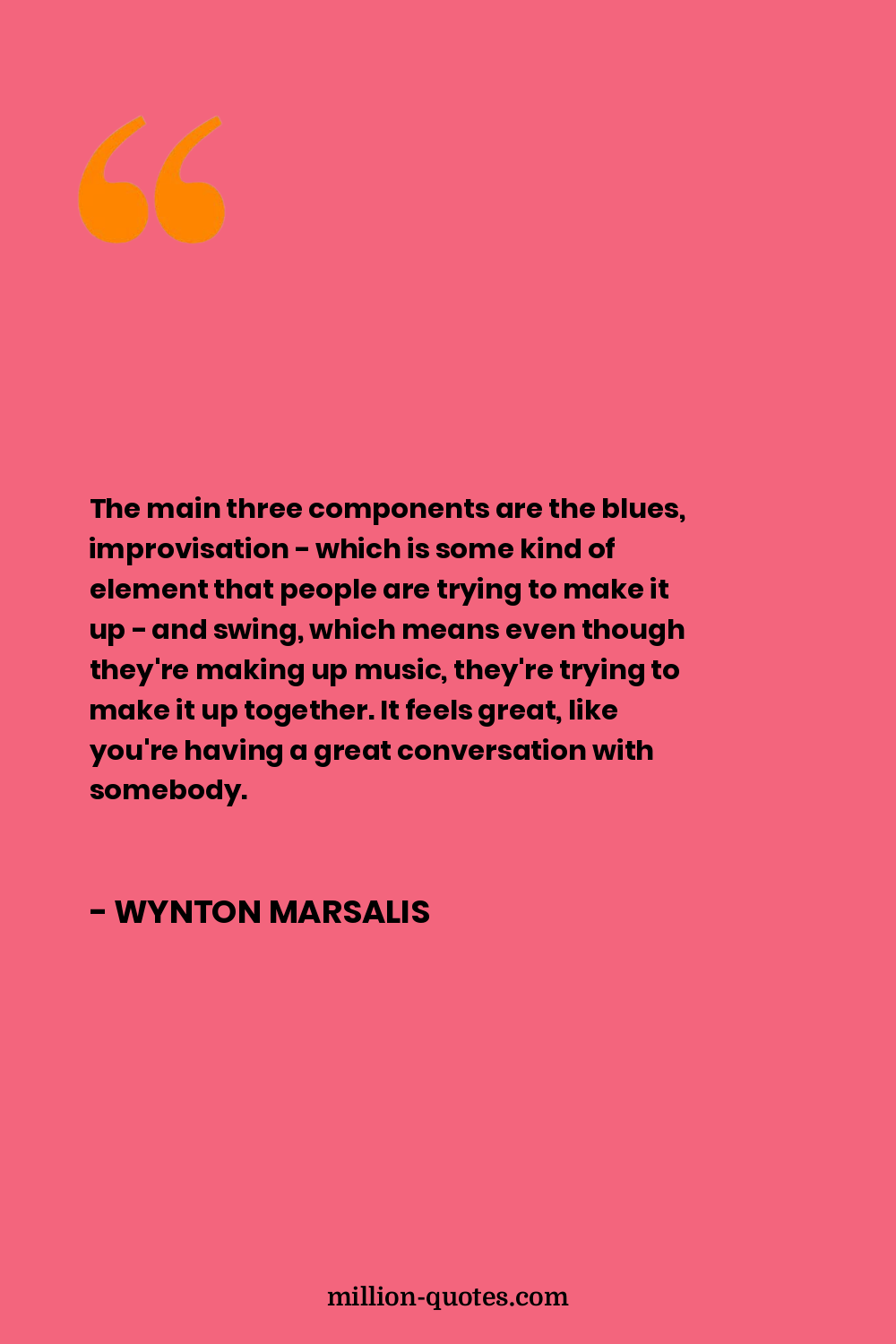 The main three components are the blues, improvisation - which is some kind of element that people are trying to make it up - and swing, which means even though they're making up music, they're trying to make it up together. It feels great, like you're having a great conversation with somebody.