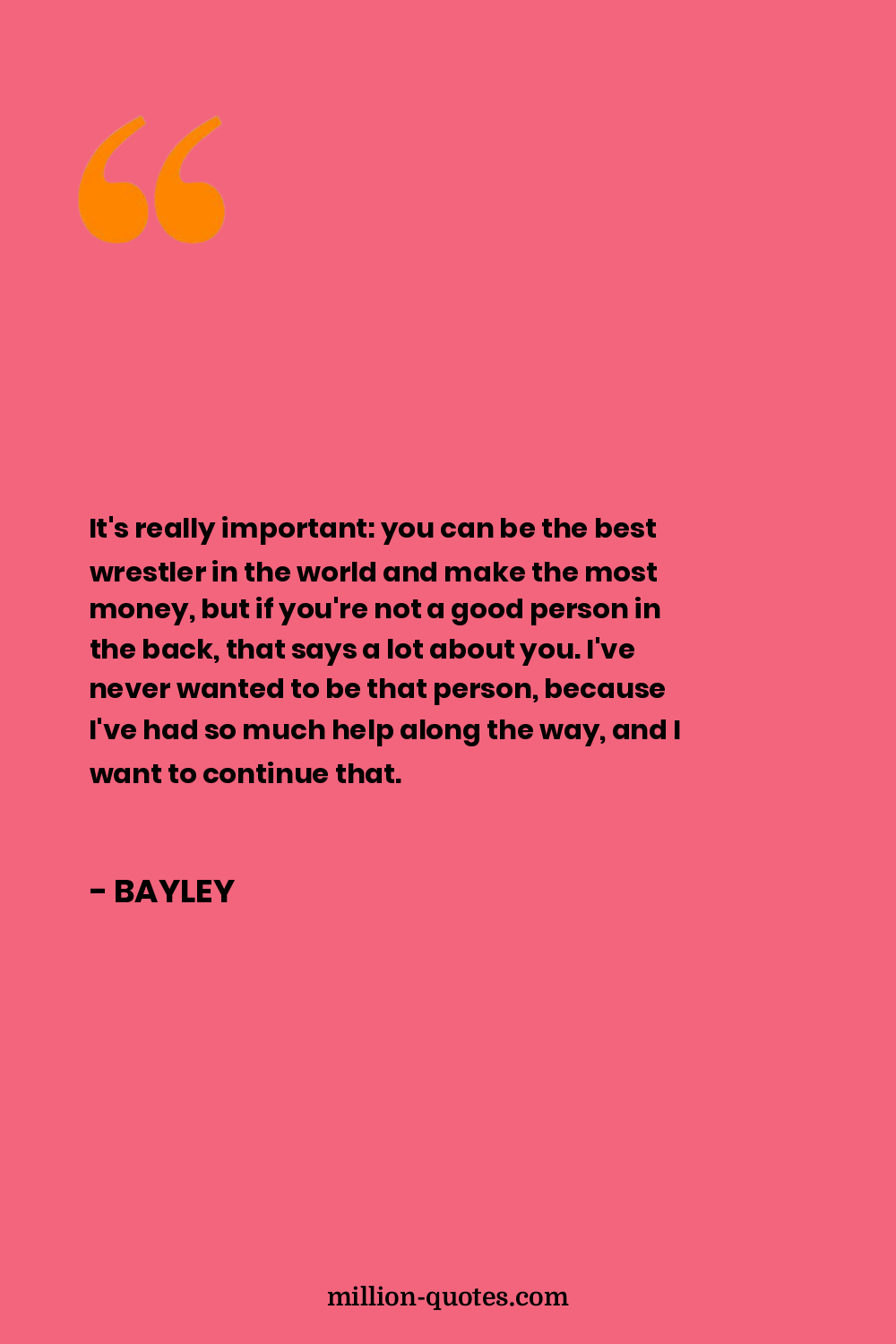 It's really important: you can be the best wrestler in the world and make the most money, but if you're not a good person in the back, that says a lot about you. I've never wanted to be that person, because I've had so much help along the way, and I want to continue that.
