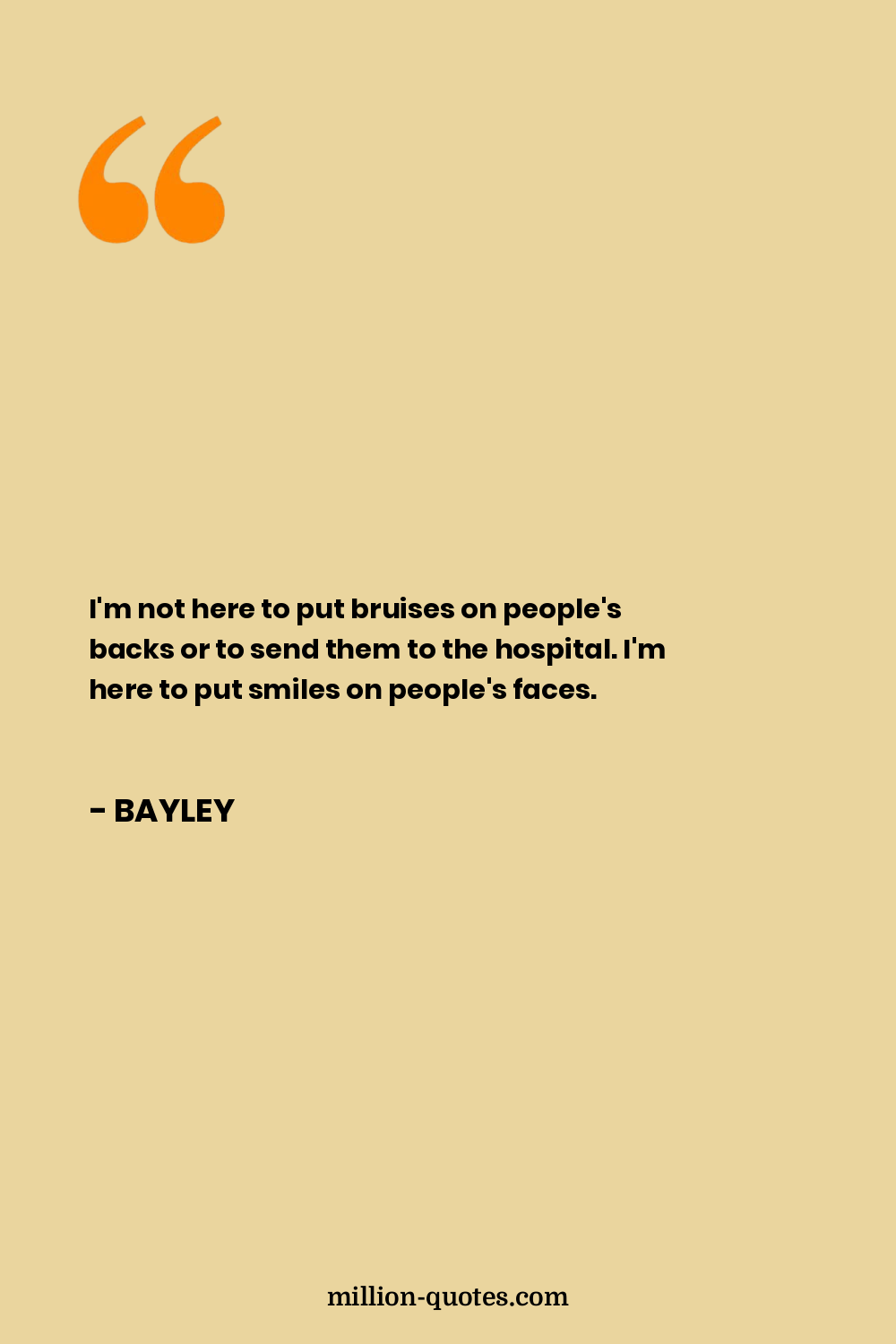 I'm not here to put bruises on people's backs or to send them to the hospital. I'm here to put smiles on people's faces.