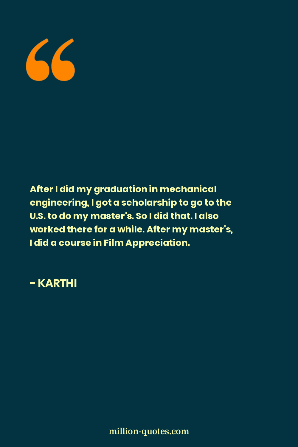 After I did my graduation in mechanical engineering, I got a scholarship to go to the U.S. to do my master's. So I did that. I also worked there for a while. After my master's, I did a course in Film Appreciation.