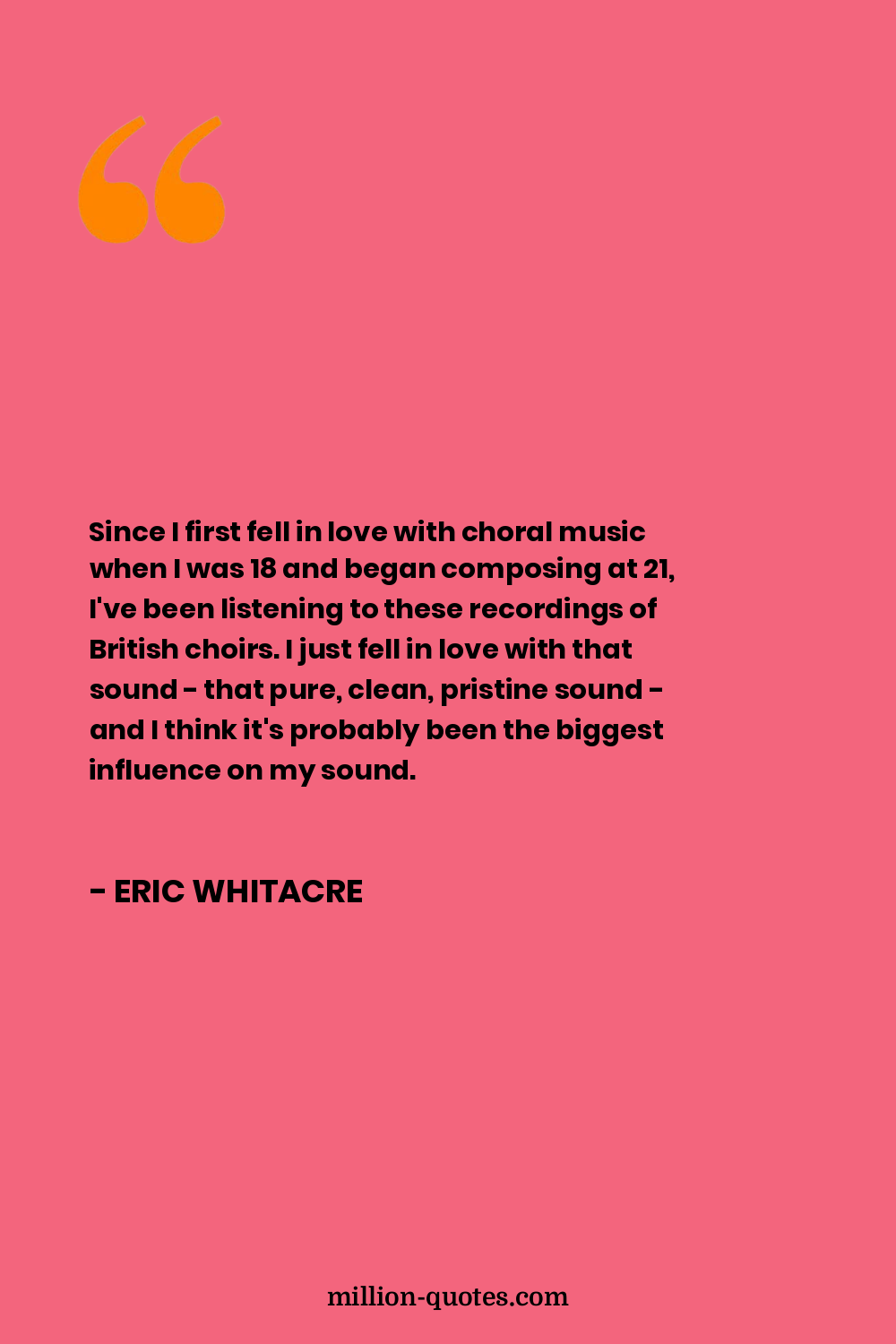 Since I first fell in love with choral music when I was 18 and began composing at 21, I've been listening to these recordings of British choirs. I just fell in love with that sound - that pure, clean, pristine sound - and I think it's probably been the biggest influence on my sound.