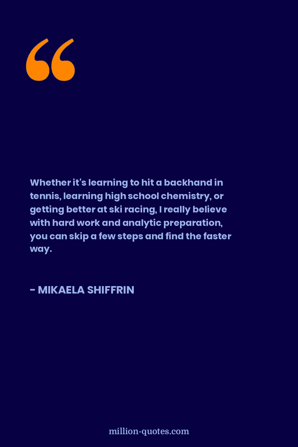 Whether it's learning to hit a backhand in tennis, learning high school chemistry, or getting better at ski racing, I really believe with hard work and analytic preparation, you can skip a few steps and find the faster way.