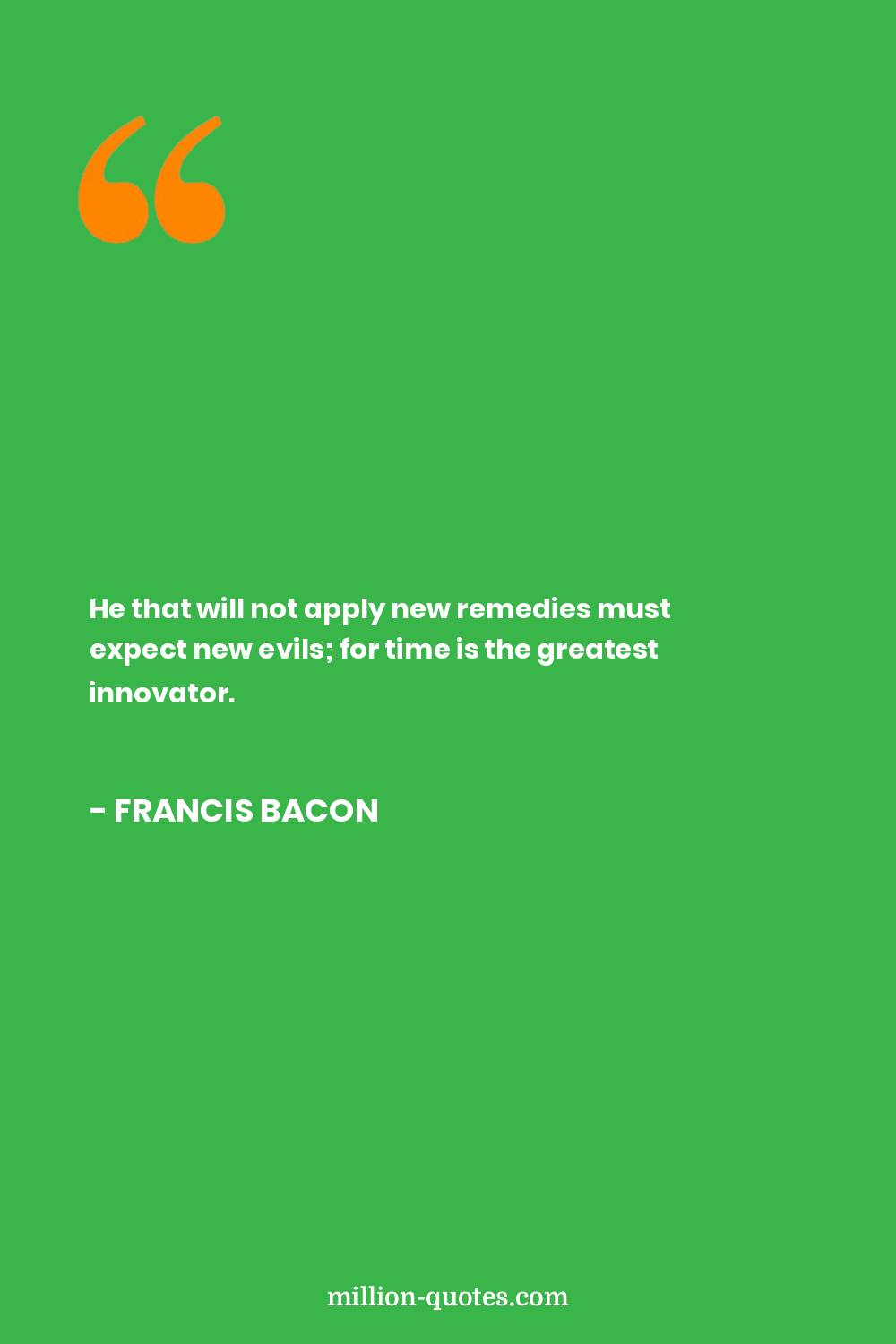 He that will not apply new remedies must expect new evils; for time is the greatest innovator.