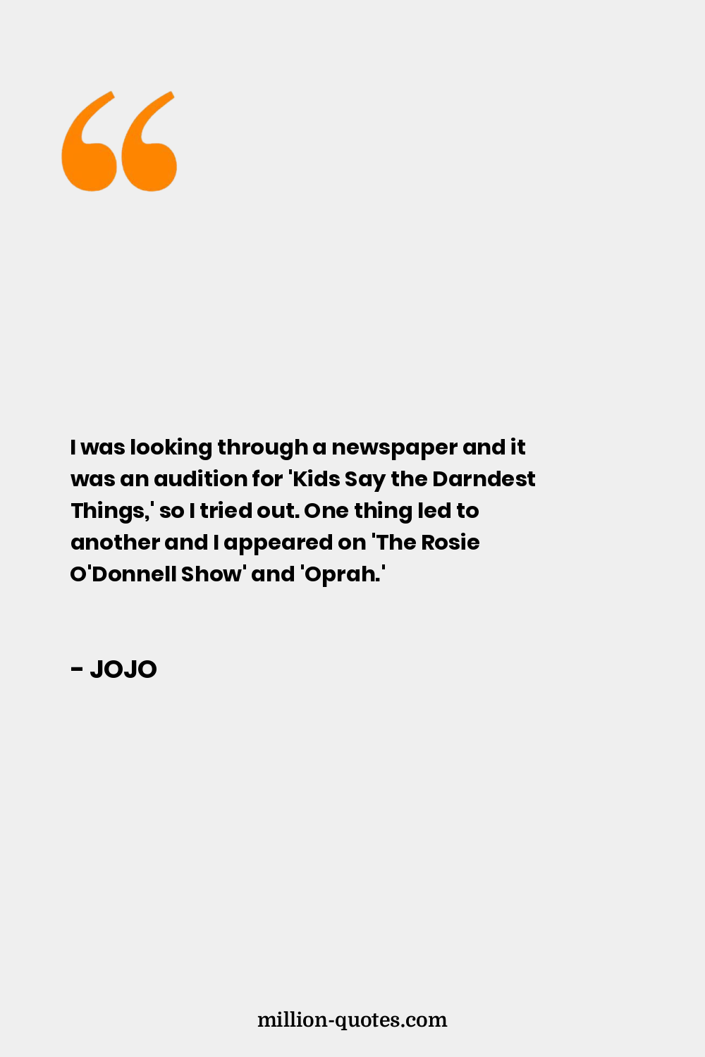 I was looking through a newspaper and it was an audition for 'Kids Say the Darndest Things,' so I tried out. One thing led to another and I appeared on 'The Rosie O'Donnell Show' and 'Oprah.'