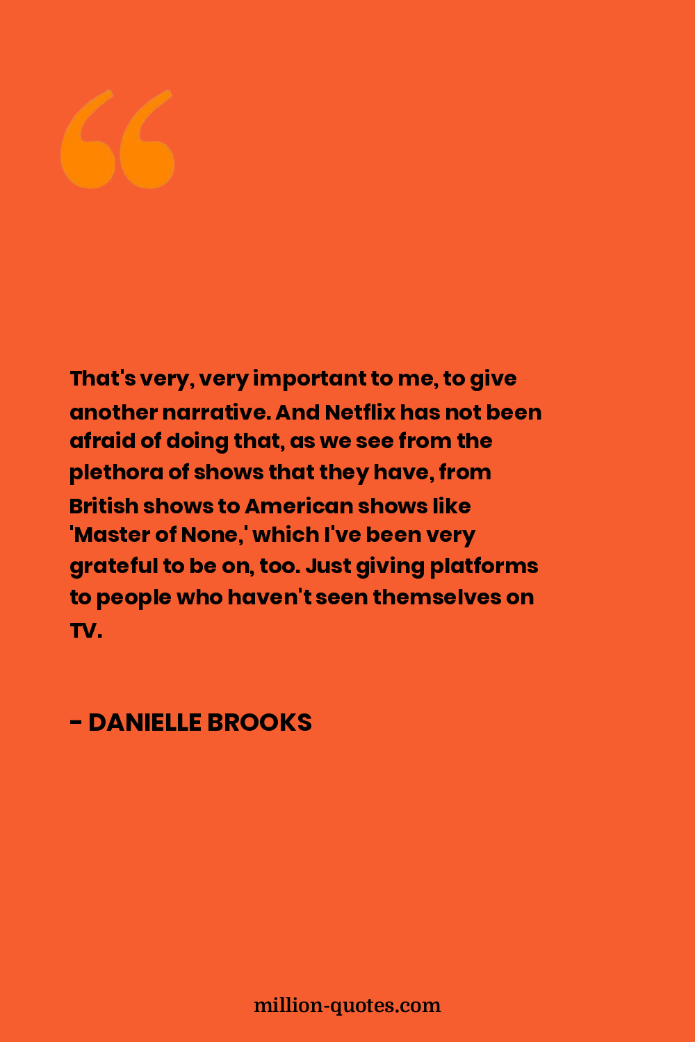 That's very, very important to me, to give another narrative. And Netflix has not been afraid of doing that, as we see from the plethora of shows that they have, from British shows to American shows like 'Master of None,' which I've been very grateful to be on, too. Just giving platforms to people who haven't seen themselves on TV.