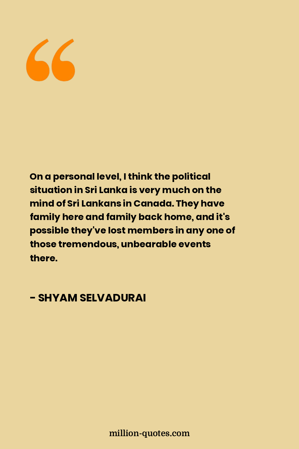 On a personal level, I think the political situation in Sri Lanka is very much on the mind of Sri Lankans in Canada. They have family here and family back home, and it's possible they've lost members in any one of those tremendous, unbearable events there.