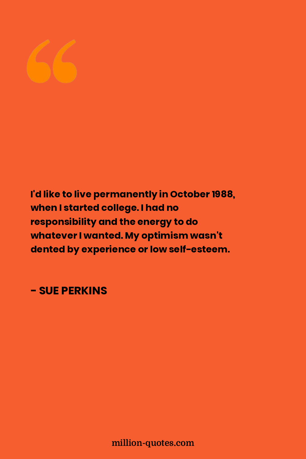 I'd like to live permanently in October 1988, when I started college. I had no responsibility and the energy to do whatever I wanted. My optimism wasn't dented by experience or low self-esteem.