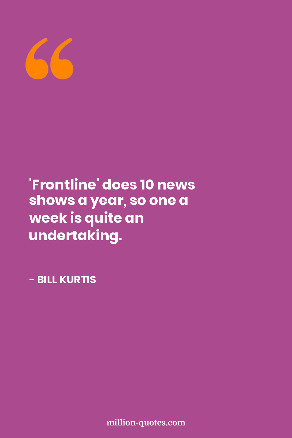 'Frontline' does 10 news shows a year, so one a week is quite an undertaking.