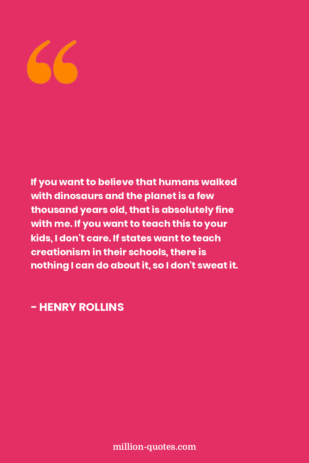If you want to believe that humans walked with dinosaurs and the planet is a few thousand years old, that is absolutely fine with me. If you want to teach this to your kids, I don't care. If states want to teach creationism in their schools, there is nothing I can do about it, so I don't sweat it.