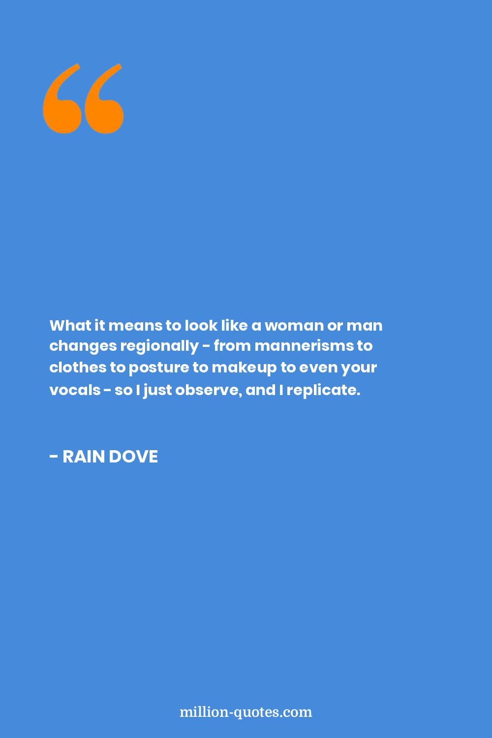 What it means to look like a woman or man changes regionally - from mannerisms to clothes to posture to makeup to even your vocals - so I just observe, and I replicate.