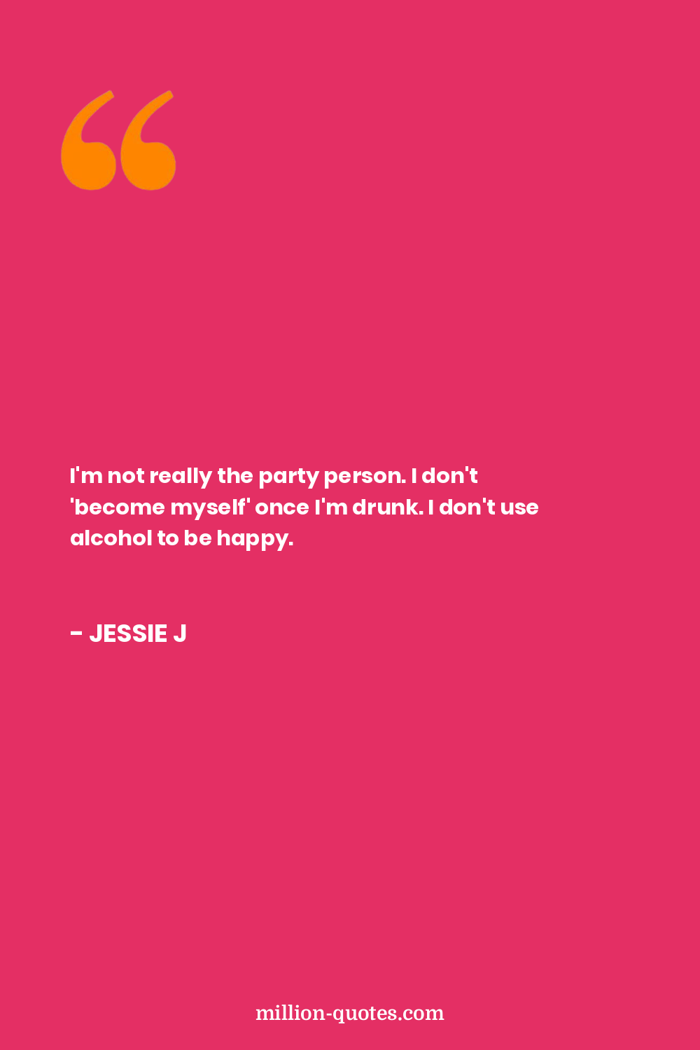 I'm not really the party person. I don't 'become myself' once I'm drunk. I don't use alcohol to be happy.