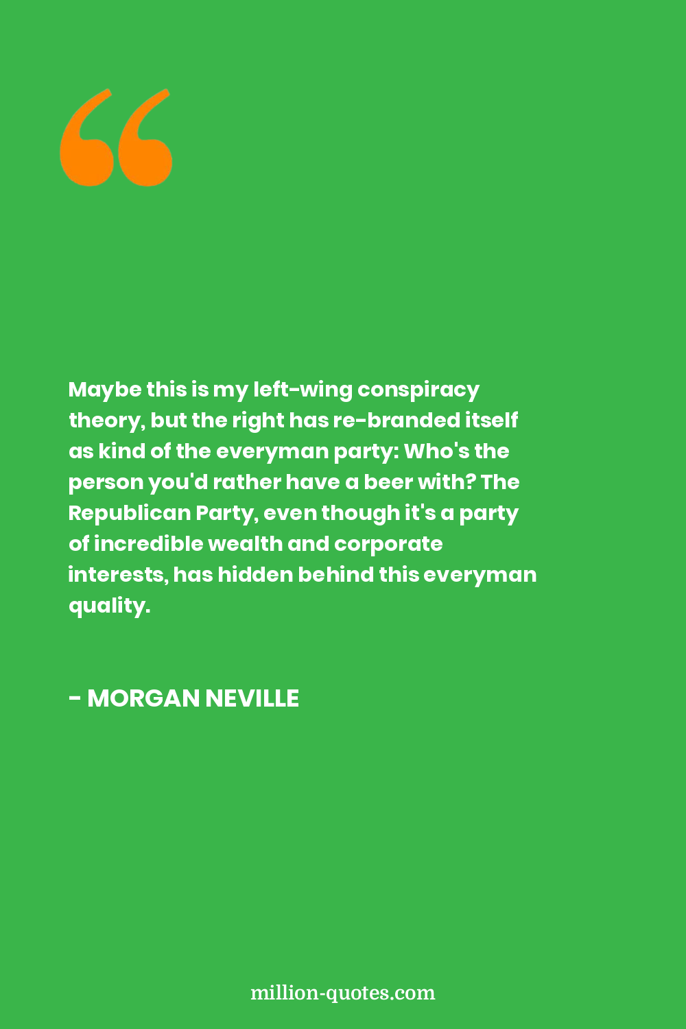 Maybe this is my left-wing conspiracy theory, but the right has re-branded itself as kind of the everyman party: Who's the person you'd rather have a beer with? The Republican Party, even though it's a party of incredible wealth and corporate interests, has hidden behind this everyman quality.
