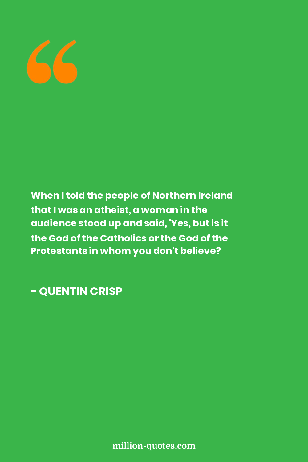 When I told the people of Northern Ireland that I was an atheist, a woman in the audience stood up and said, 'Yes, but is it the God of the Catholics or the God of the Protestants in whom you don't believe?
