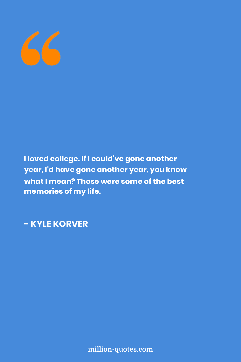 I loved college. If I could've gone another year, I'd have gone another year, you know what I mean? Those were some of the best memories of my life.