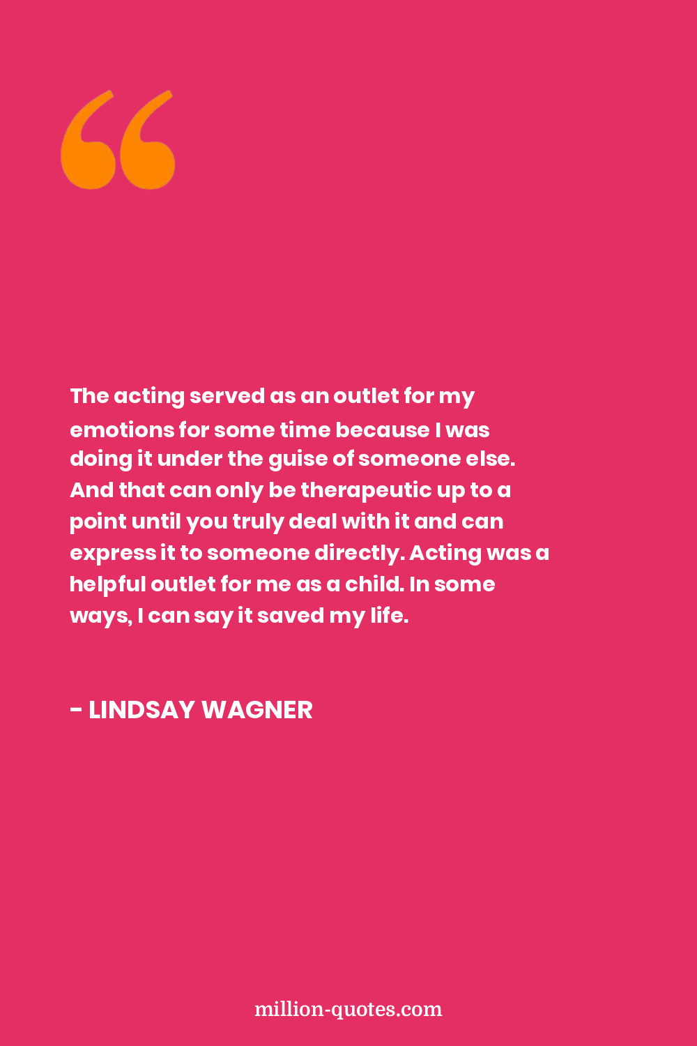 The acting served as an outlet for my emotions for some time because I was doing it under the guise of someone else. And that can only be therapeutic up to a point until you truly deal with it and can express it to someone directly. Acting was a helpful outlet for me as a child. In some ways, I can say it saved my life.